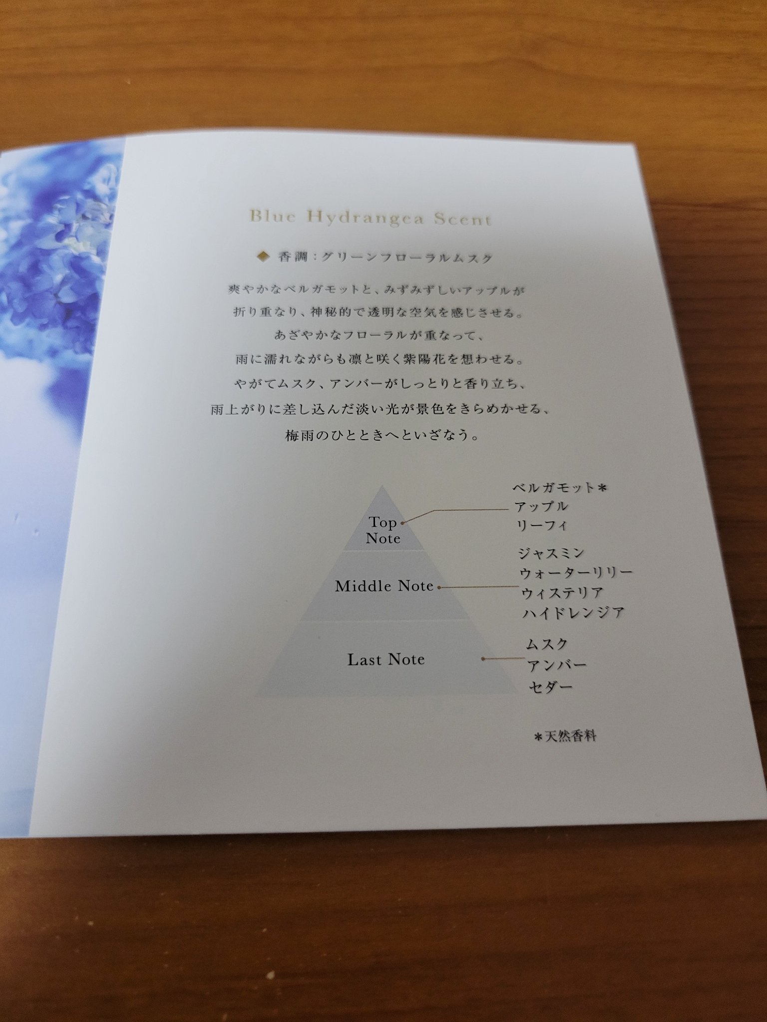 - 限定発売 雨の日の主役の、魅力を存分に身に纏って。 透明感と優しさが共存する、ブルーハイドレンジアの神秘的な香り。 雨上がりの溢れた花を、光がそっと照らし出すように。 と澄んだ香りから、ほんのりと甘いフローラルの香りへ流れるように移り変わる、ブルーハイドレンジアの香り。 空の下、みずみずしく咲く紫陽花を描いた限定デザインボックスと、雨の日の柔らかい光を想わせるブルーの限定デザインボトル。