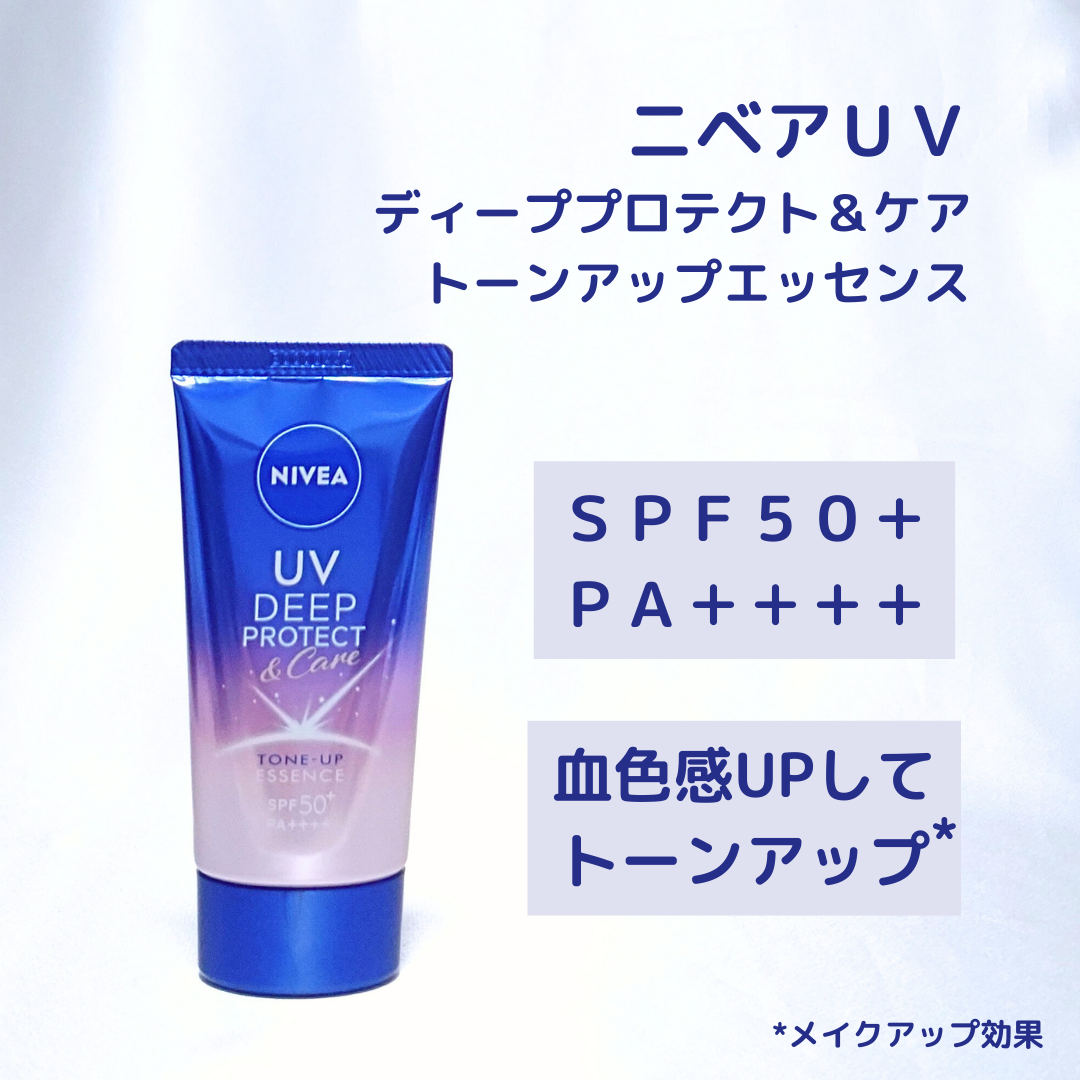 ニベアUVディーププロテクト&ケアトーンアップエッセンスニベア花王からいただきました✨SPF50+・PA++++日やけによるシミ予防*1UV。血色感をUPさせて自然に肌を明るくみせる*2トーンアップエッセンスです。主にシミの原因となるUV-B...