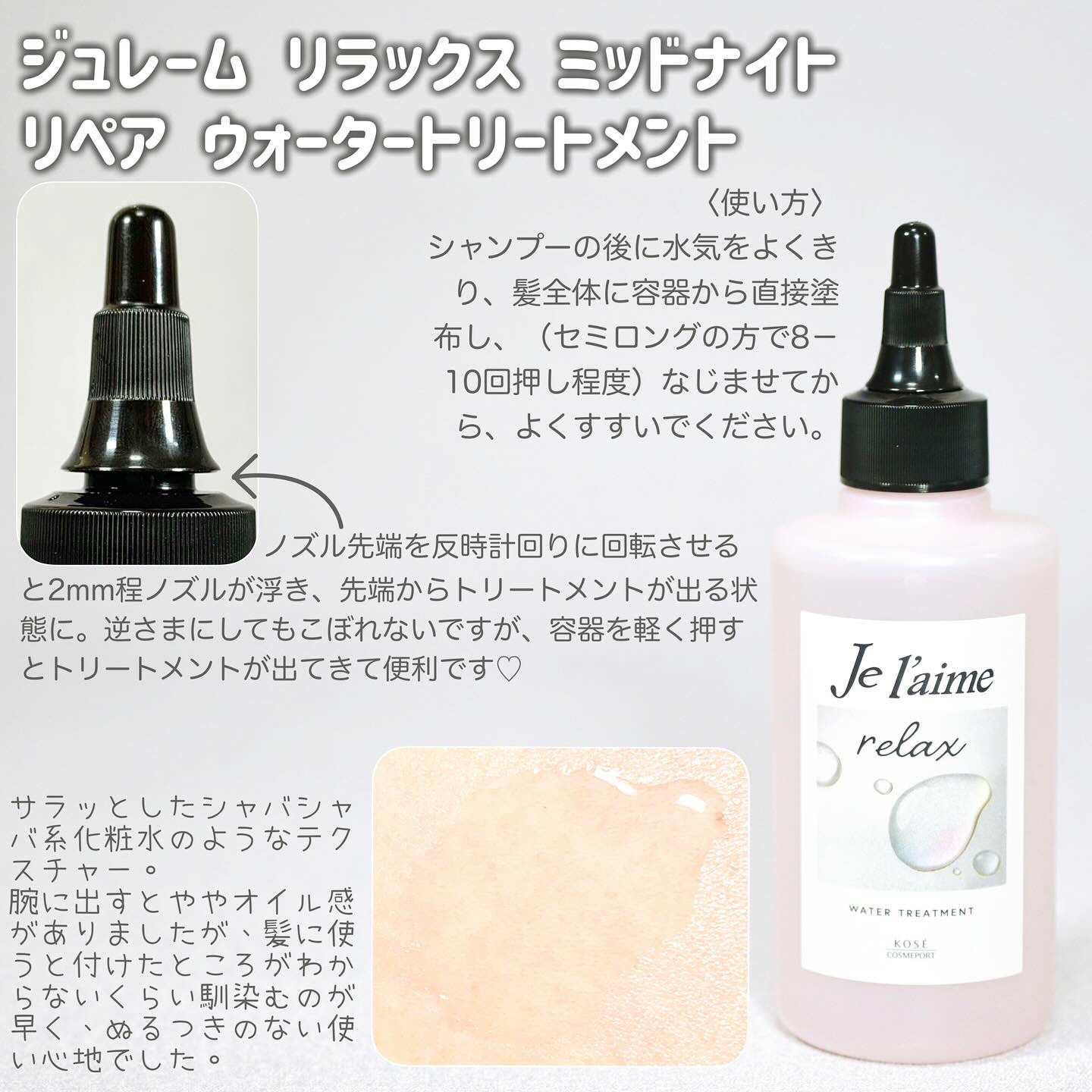 商品詳細情報Je l'aime ジュレーム リラックス ミッドナイトリペア ウォータートリートメント<洗い流すヘアトリートメント>