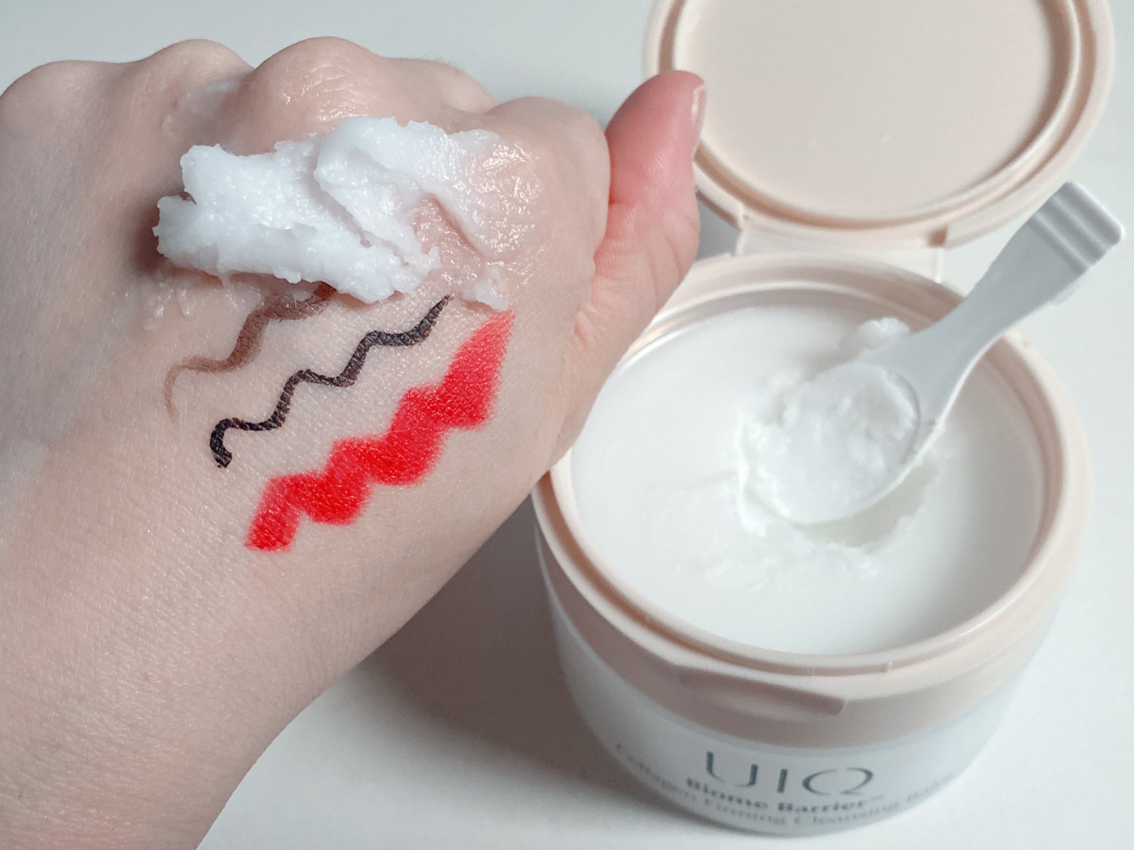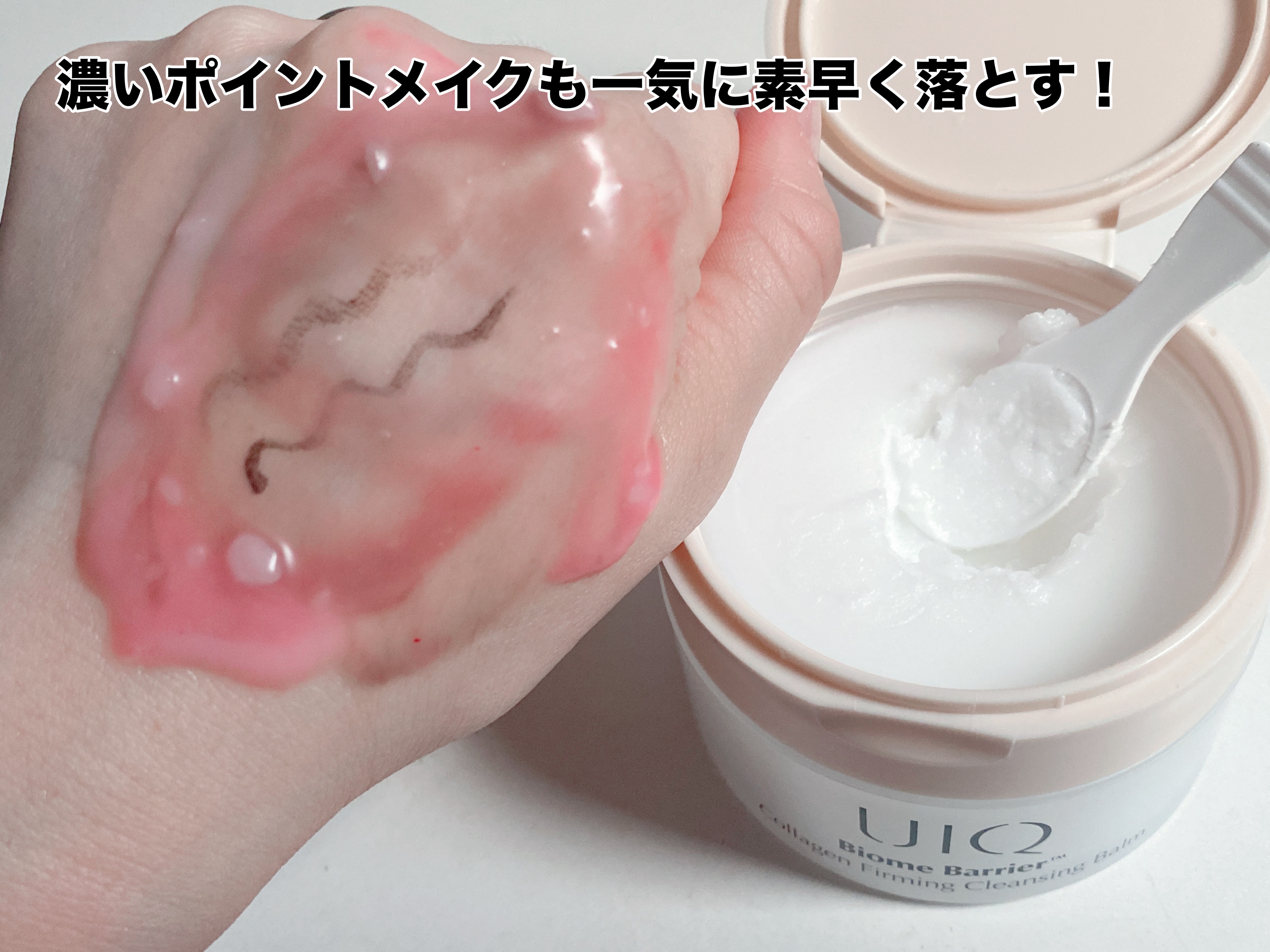 ウォータープルーフメイクアップ99.9%洗浄 一度の洗顔でディープクレンジング!バームタイプのテクスチャーで肌に柔らかく溶け、濃いアイライン・マスカラ・リップまでスッキリクレンジング! コラーゲン配合でキメの整った美肌へ導く うるおいたっぷりの肌へ導く第一歩はクレンジング。フランス産ハイドローライズドコラーゲンとフルクタン成分が配合*していて洗顔だけでスキンケアしたようなしっとりとした肌を手に入れられる 濃いポイントメイクも一気に素早く落とす 手の温度で溶けやすいテクスチャー。優れたメルティング力のため、肌に刺激を少なくメイクを落とす。コラーゲン配合のため、洗顔後もつっぱりにくい
