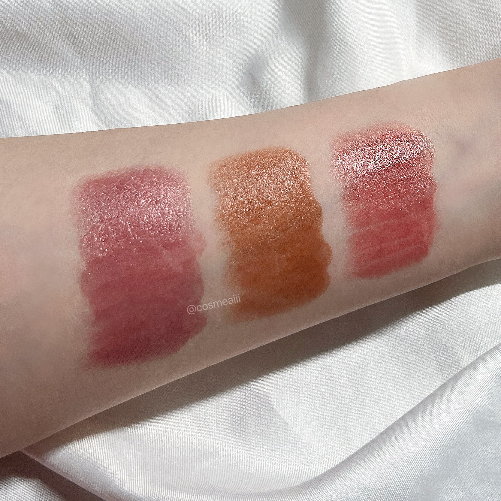 今までみんなご存知のジューシーラスティングティントも愛用してますが 自分的にはかなり高級感がアップした↑ 実物みて感動するぐらいめっちゃ好きなパケ😭🌷 名前通りピーチカラーでイエベさん絶対買って欲しいかわいい色です❤️ イエベさんでも簡単に使えるローズカラーで デートにおすすめなお色です◎ オレンジブラウンカラーで 塗ったら一気にオシャレになれるし秋にぴったりなカラーです🍁 正直。既存のジューシーラスティングティントと似てるような質感ですが くちびるに塗ると新作のほうが若干塗りやすくなった気がします 色持ちは相変わらずめっちゃ良いです◎ 画像の7枚目からはスウォッチ、参考になればと思います。 ティッシュで擦っても色はちゃんと残ってる 既存のティントリップは甘いキャンディな匂いがしたが、 今回の新作は少し匂いもしますが、嫌な甘い匂いではない。 匂い人それぞれ感覚違うですけど、個人的には結構大丈夫だし、むしろ前の商品より好き♡