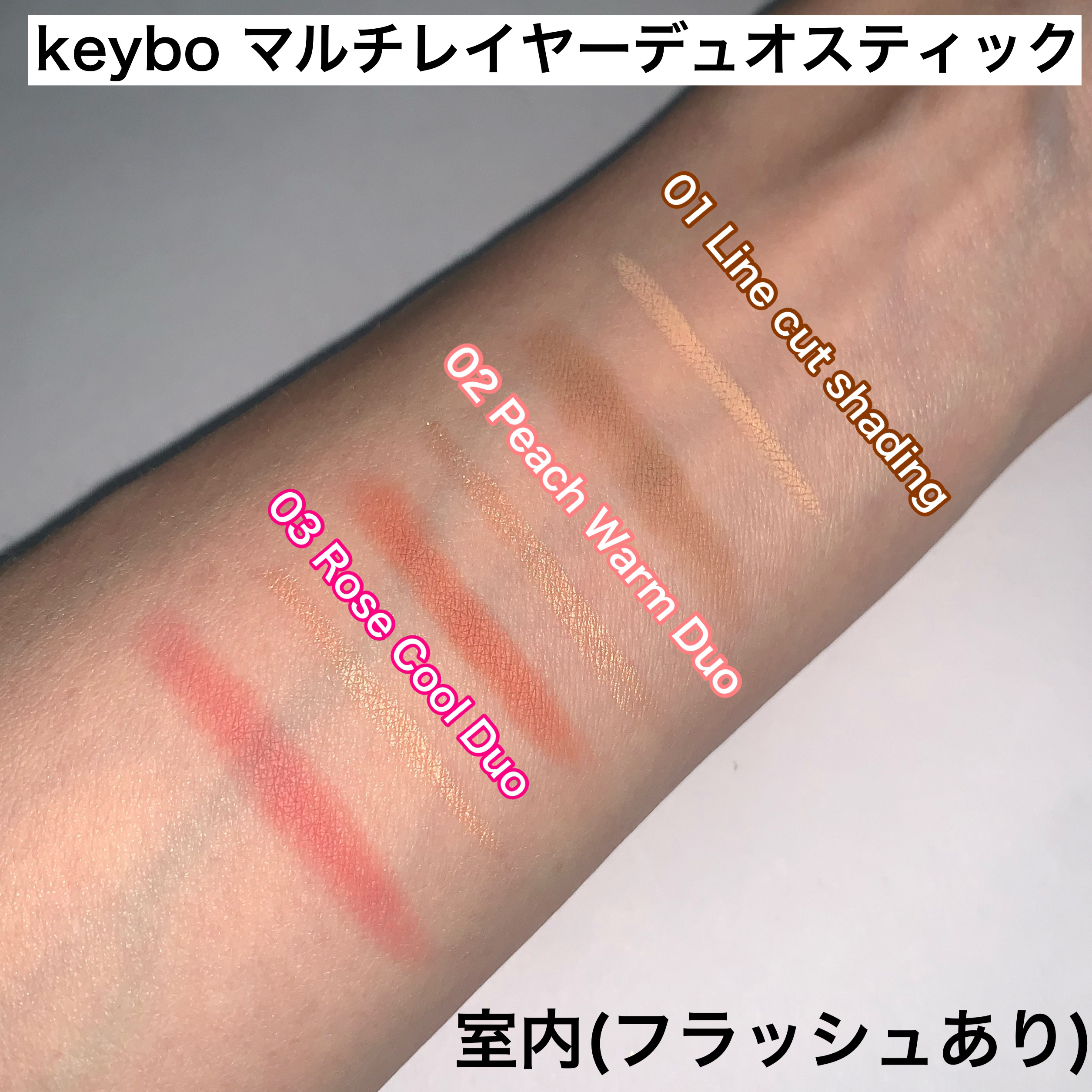 ポーチに忍ばせておくのにもピッタリなサイズ感!keyboマルチレイヤーデュオスティック✧01Linecutshadingゼロからラインを作れる!シェーディング+コンシーラーデュオ鼻筋、涙袋、フェイスライン、ほうれい線カバーに!✧02Peach...