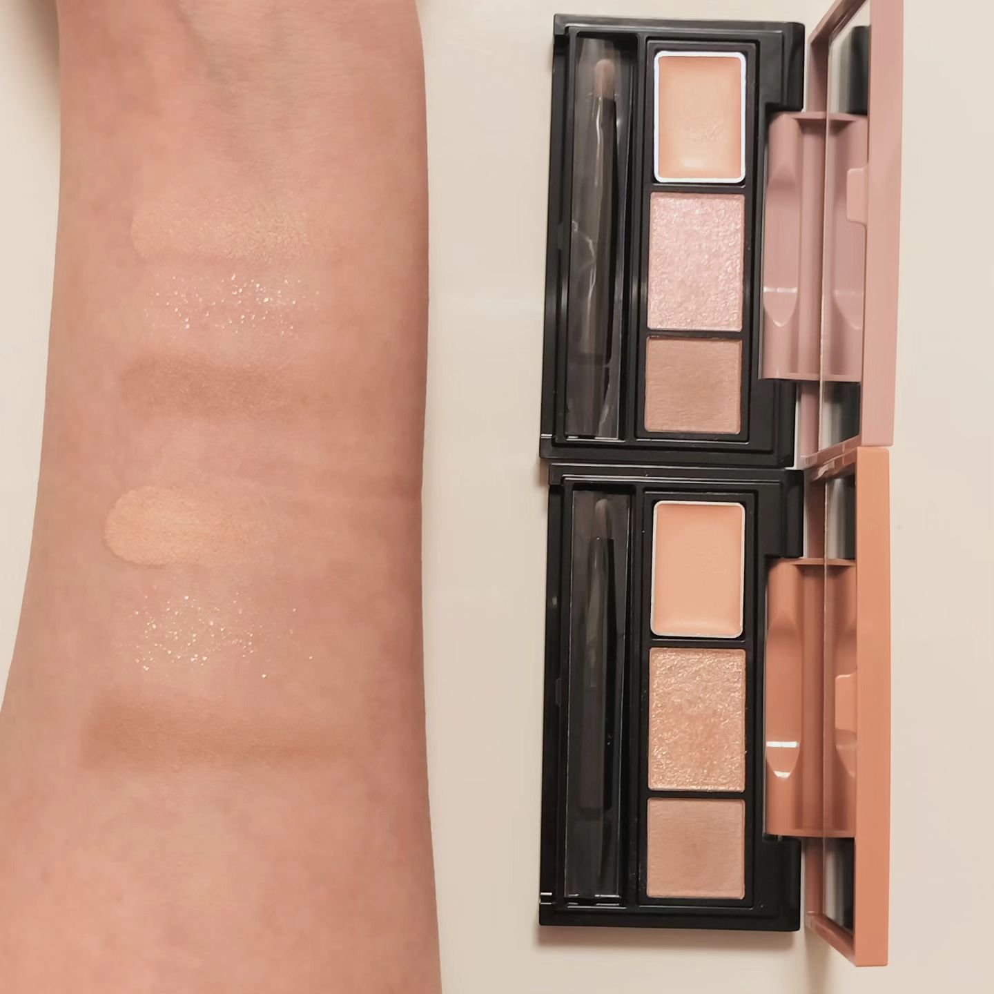 コンシーラー、グリッター、影ライナーがひとつのパレットになっている優れもの。 コンシーラー使うだけで涙袋はぷっくりするし 影色がたしかに肌馴染み良い👀 薄いコンパクトなパレットなのに鏡付きも嬉しいポイント☝️