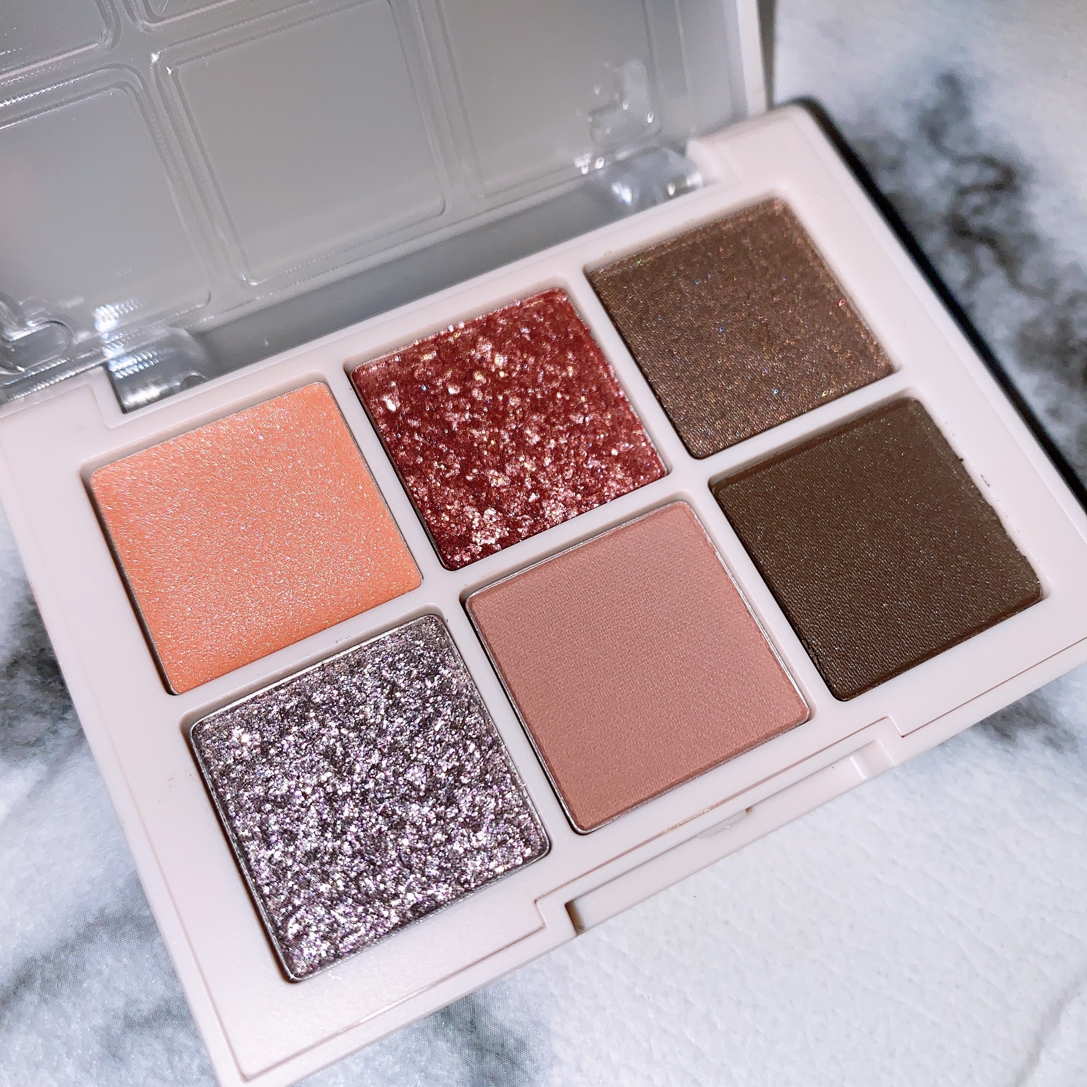 日本で販売してないと実物見れないし、買うの躊躇います。こちらはラメとグリーンコスメさんの投稿見て、めちゃくちゃ可愛かったので買いました! 全体的に見るとブルベカラーだし、でも可愛いから…見た目が好きな色なら使ってみるも有りだと思う! これは、左上のベースカラーいい!!まぶた全体に使うと、比較的くすみが目立たないし。ラメ重ねたら華やかに仕上がる。