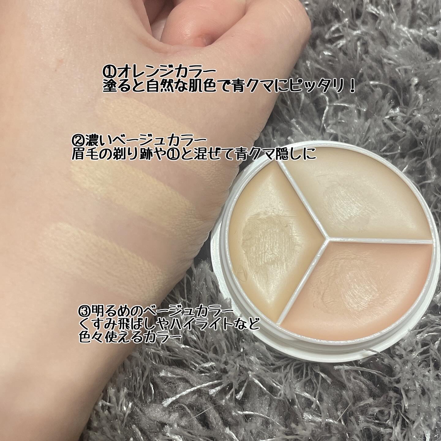 - クマからニキビ跡、シミまでこれ1つでカバー。 3色タイプだからこそ、気になるところや肌色を選ばずにご使用いただけます。 リキッドタイプを圧縮した高濃度バームのため高カバー高密着*¹を実現。 コンシーラーだけでなくコントアとしても使用可能です。 *1メーカー比