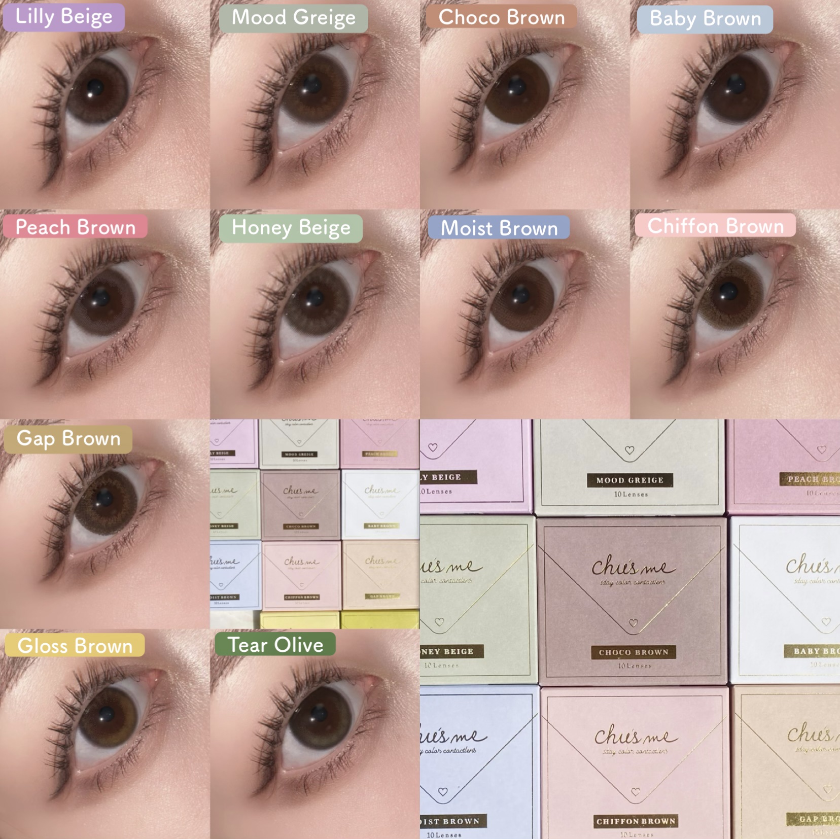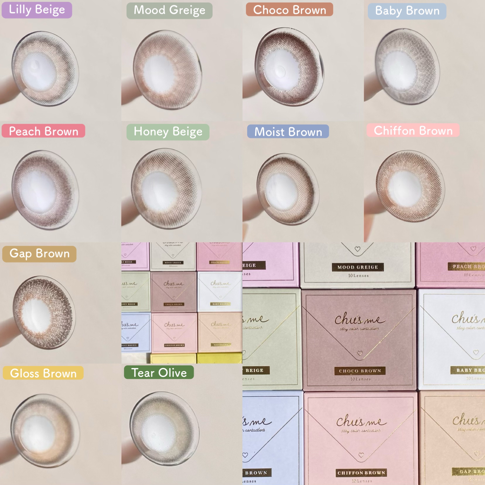チョコブラウンはシンプルなブラウンカラコン 他カラーに比べるとふちがくっきりしてますが、それでも自然! シフォンブラウンは透明感があって凄く可愛い!お気に入りカラーです。 私のお気に入りはベイビーブラウン!リピ買いしてます。凄くナチュラルなのに盛れる。