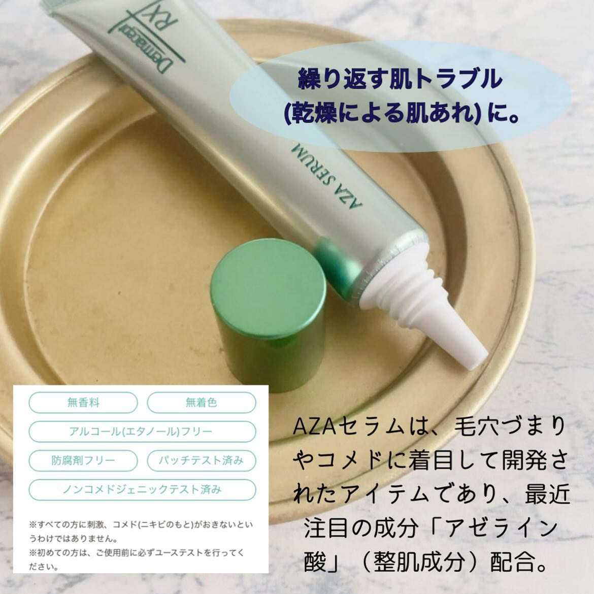 ダーマセプトは美容医療発想から生まれ、機能性を追求したハイレベルなスキンケアブランド!今話題の成分アゼライン酸*配合の『ダーマセプトRXAZAセラム』‼️少し固めのクリームだけどのびはいい☺️皮脂や毛穴、赤みなど気になるところに塗るよ!顔全体...