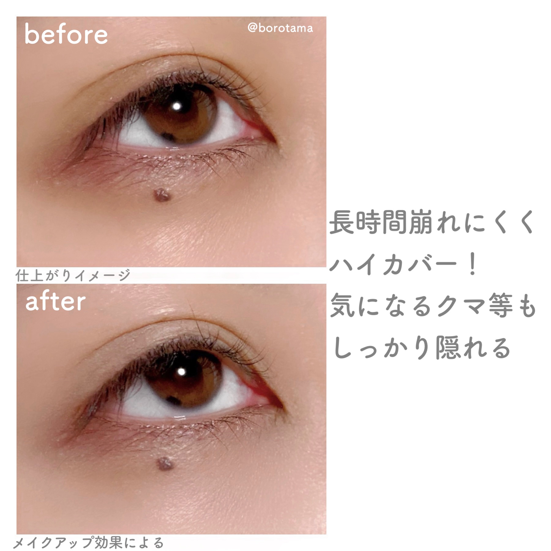 - クマからニキビ跡、シミまでこれ1つでカバー。 3色タイプだからこそ、気になるところや肌色を選ばずにご使用いただけます。 リキッドタイプを圧縮した高濃度バームのため高カバー高密着*¹を実現。 コンシーラーだけでなくコントアとしても使用可能です。 *1メーカー比