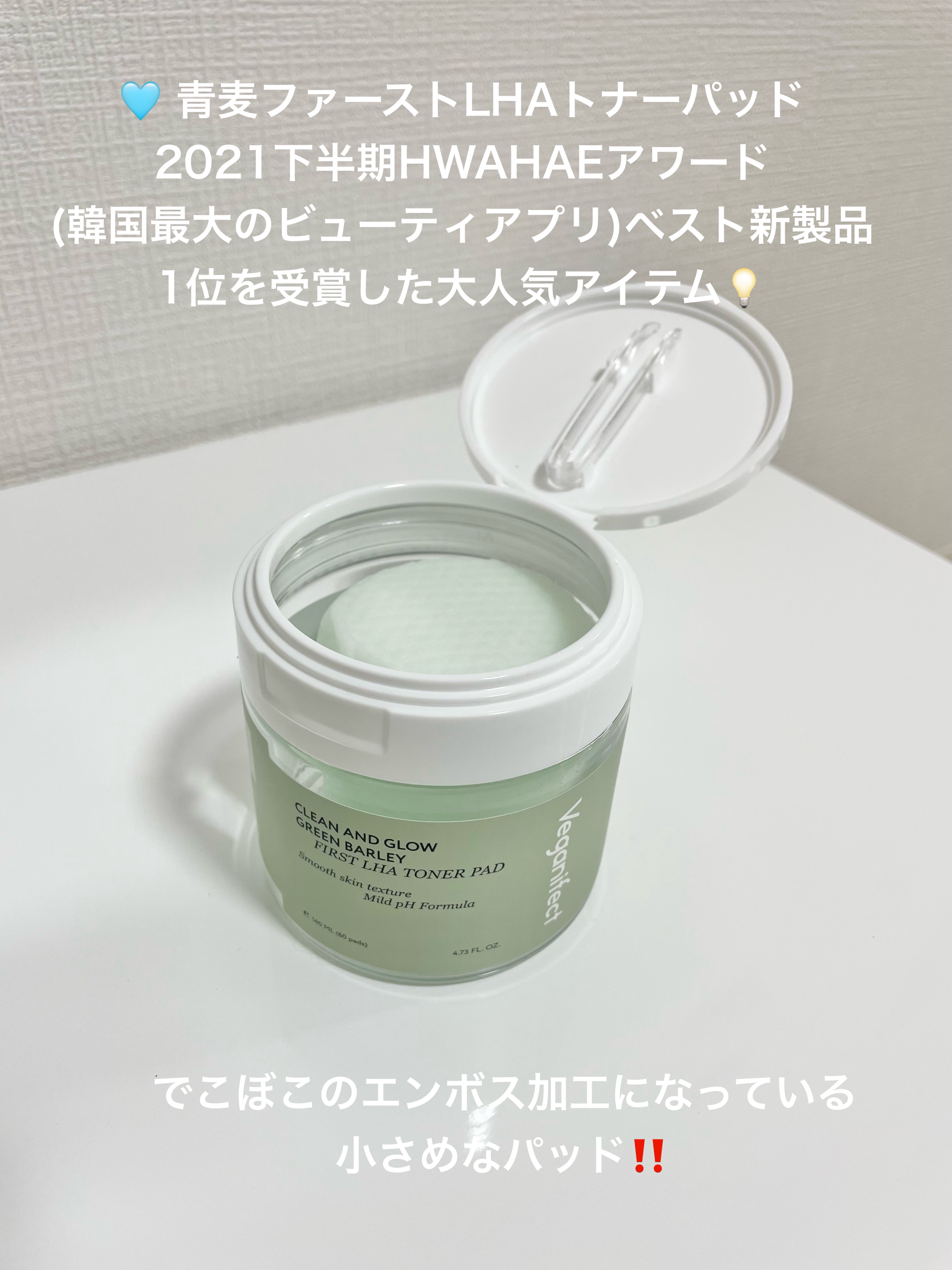 青麦に含まれるB-グルカンはヒアルロン酸より水分貯蔵能力が20%以上優れていると評価されている次世代保湿成分💚 みんな大好きオリーブヤングやファへでもランキング1位🥇を獲得しているよ⟡.· しっかり厚みのある、片面ぽこぽこのパッド.•♬ 朝洗顔の代わりの拭き取りや、お肌に水分を入れ込みたいときのパック🧖♀️に、メイク前の鎮静でメイクのりも⤴︎︎♡♡