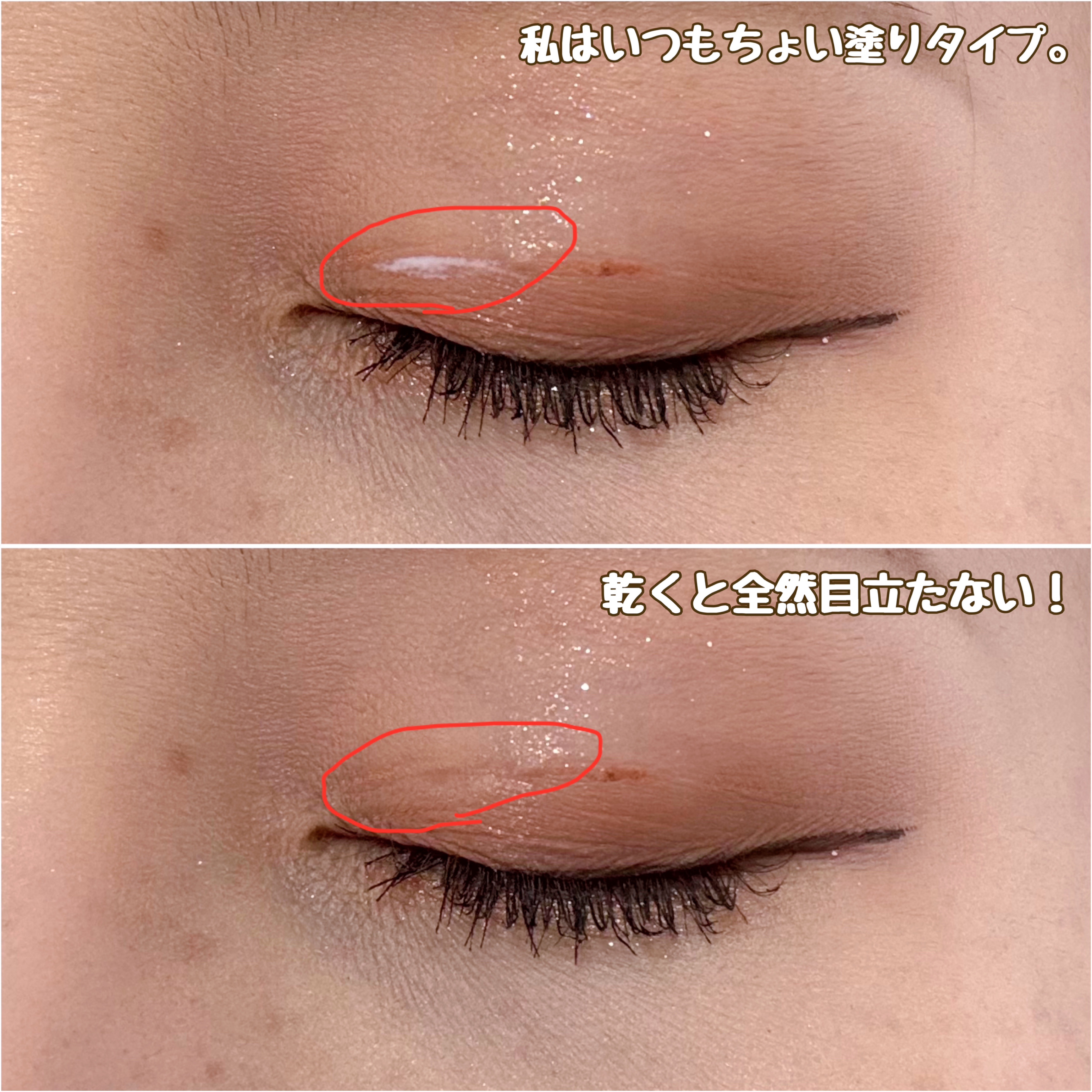 液を塗ったが部分がギュッと収縮して、透明な人工皮膜になるタイプの二重コスメ👁️✨ たるんだまぶたや伸びてしまったまぶたの方にオススメなタイプ💡 接着式としても使えて、つけまのりとしても使えるので便利です😊💖