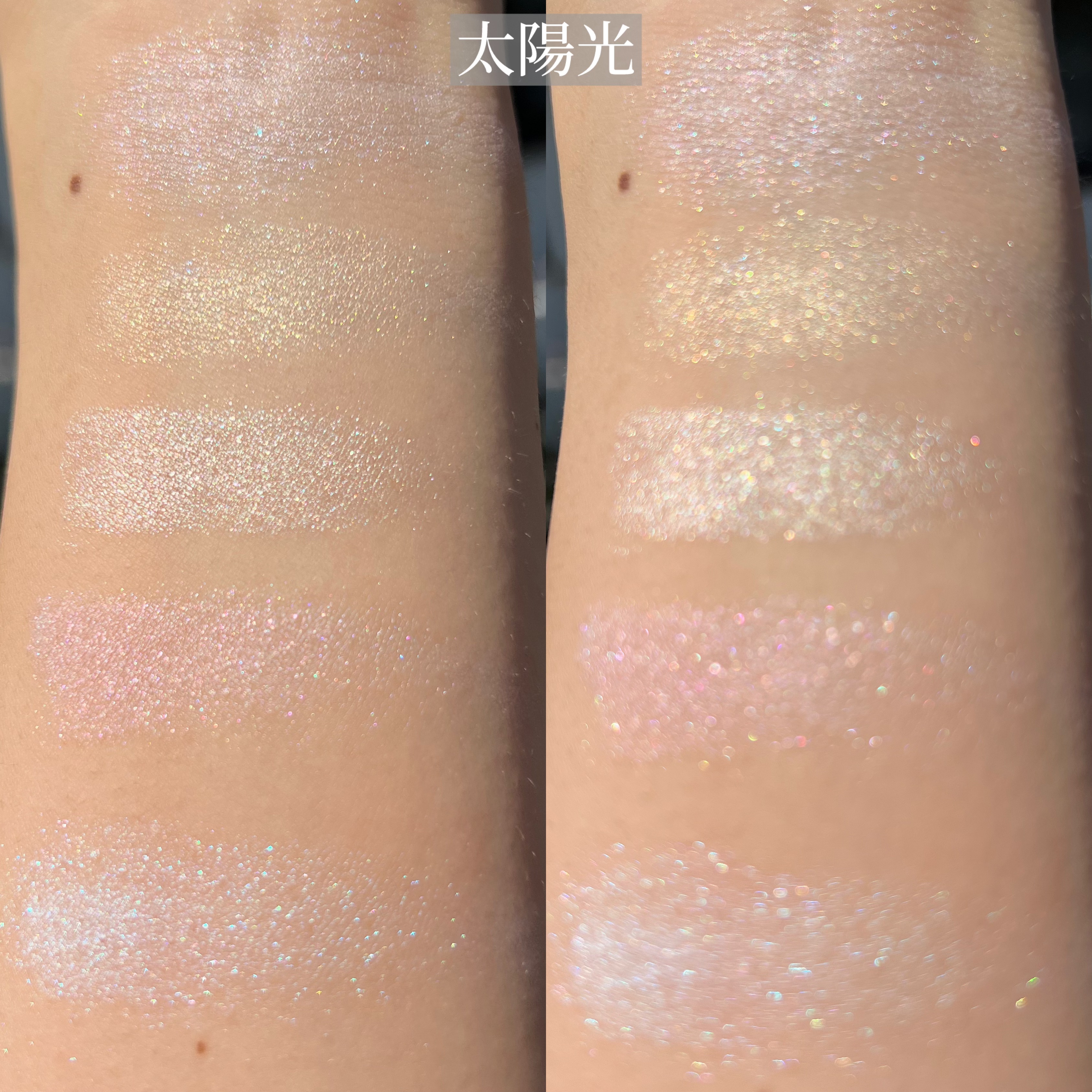 今回の限定色は全体的に青みが強く、幻想的な感じがした。ナチュラルで肌なじみの良い感じというよりは、光で透明感を形成してくれる感じ◎ ラメ感というよりパール感のあるハイライトの方が好きな私はこれ刺さりすぎて最高だった。繊細なツヤで770円とは思えない上品さがたまらない。 これからもセザンヌ毎年限定ハイライト出してくれるんかな?絶対コンプしちゃうわ。笑