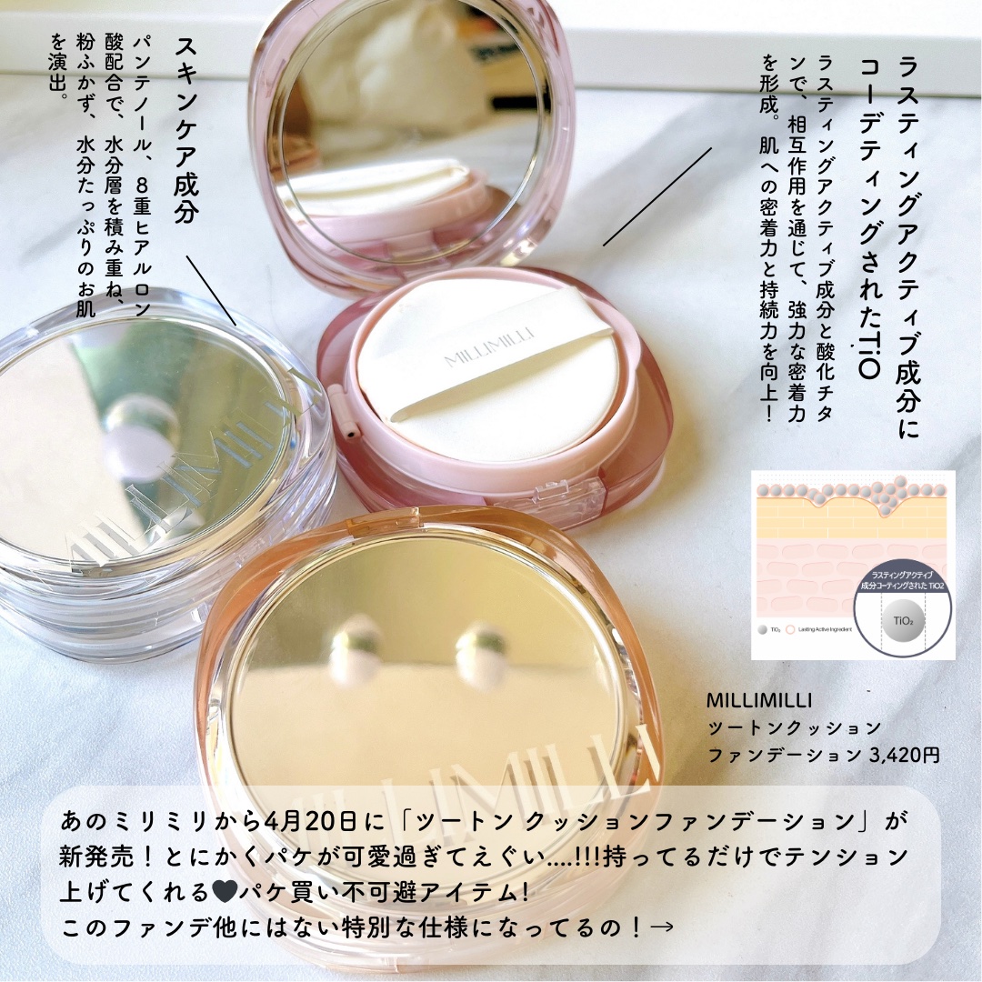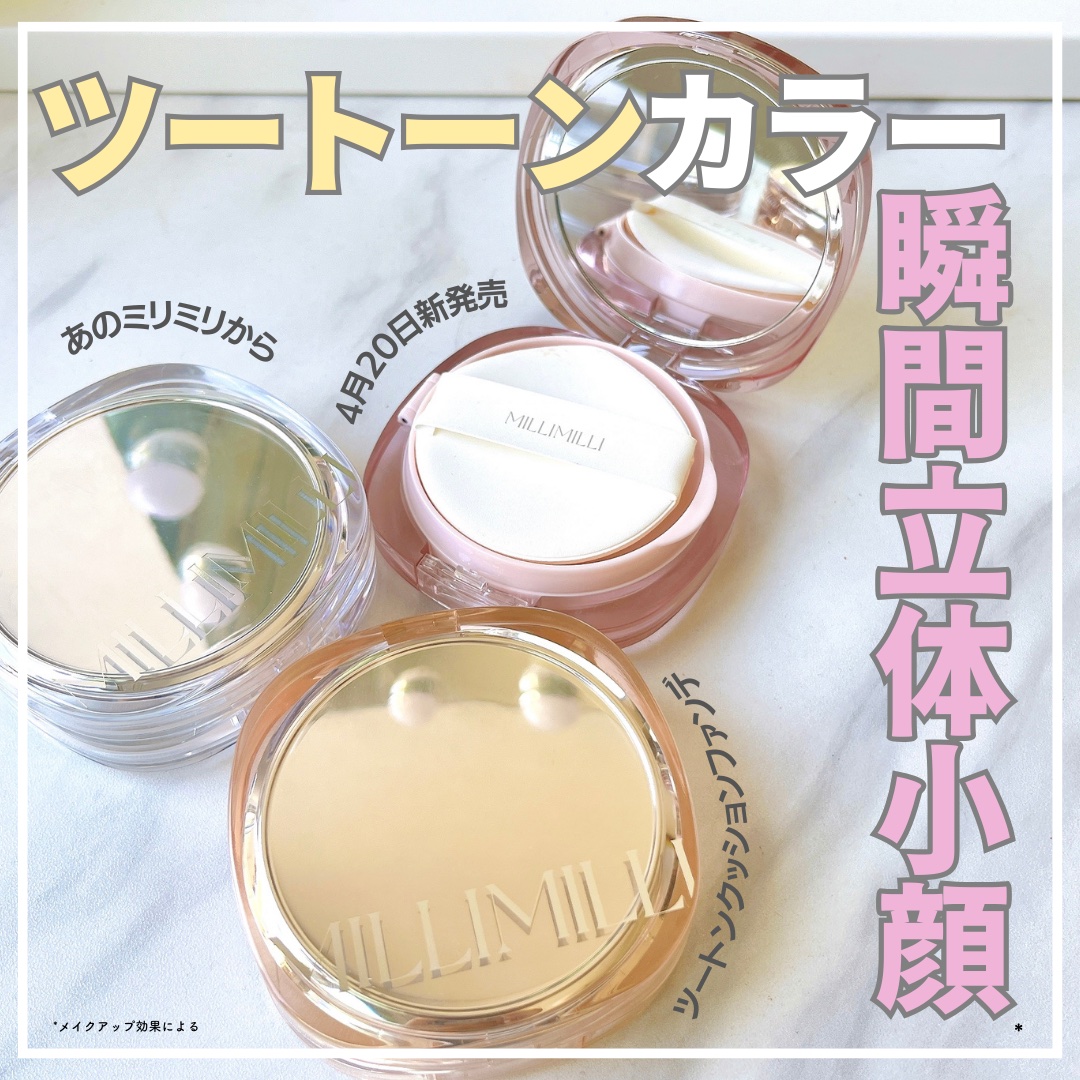 🧁🩷MILLIMILLIツートンクッション202ロージーツートンで立体小顔がつくれて、トーンアップ&肌色補正が叶うクッションファンデ✨️(メイクアップ効果による)メインカラー:全体的な肌トーンを均一に整えるデュアルカラー:額・鼻すじ、...