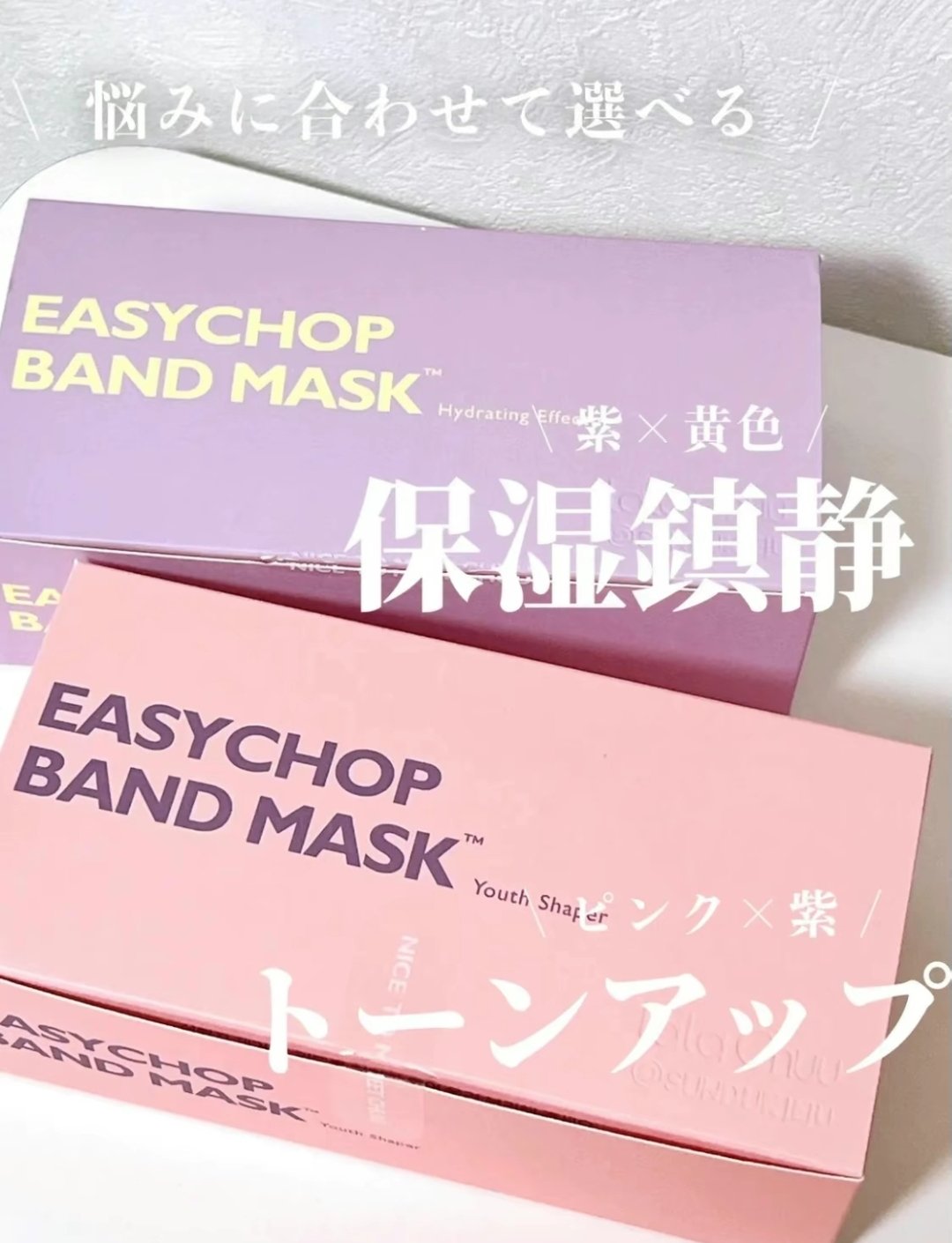 顔の大きさ、悩みの部分 どこにもぴったり貼れるバンドマスク ユースシェーパーはトーンアップ・肌改善 ハイドレーティングエフェクターは保湿・鎮静 伸びるマジックバンド 桃から抽出した植物性セラミド配合でしっとりとした明るい肌へ ソフトでやさしい OEKO-TEX1等級純綿生地 顔はもちろん、肘・膝・踵にも使える 部分ケアが必要な時 ケアしたい部分にそっと伸ばしてつけ、 5分後にはがした後、パッティングして仕上げる 全体ケアが必要な時 ピンセットでシートを1枚ずつ取り出し、 あごからおでこまで順番に付ける 細長いシートは初体験でした! 薄いシートで伸びるて、ピタッと密着するので、どこでも貼りやすかったです✧ 特にネックケア、フェイスラインにおすすめ! 3種類あるので悩みに合わせて選べるのも嬉しいポイント◎ 顔以外にも肘・膝・踵などにも使えるので、露出が多くなる季節の前にしっかりケアしたいなと思いました!
