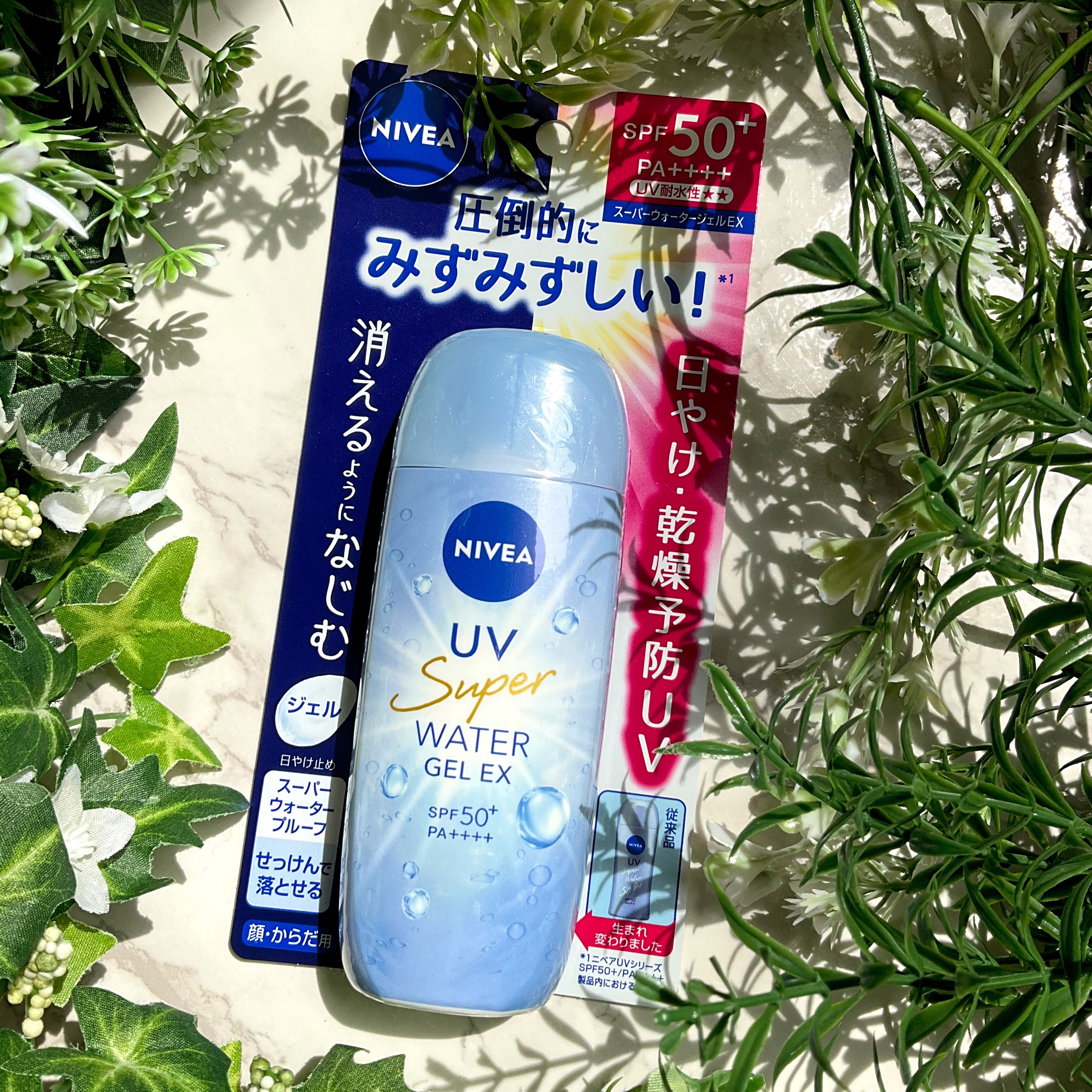 - 圧倒的にみずみずしい!(*1)消えるようになじむ 日やけ・乾燥予防UV ●圧倒的にみずみずしい!(*1) 消えるようになじむ みずみずしいジェルまたはエッセンスが全身にのび広げられ、消えるように素早くなじみます。肌と一体化するような軽さで、べたつきが気にならない素肌っぽい快適な使い心地。 ●SPF50+/PA++++/UV耐水性★★ 強烈紫外線から素肌をしっかりまもる。主にシミの原因となるUV-Bも、ハリ・弾力低下の原因となるUV-Aもしっかり防ぎます。 ●汗・水に強い 汗・水に強く落ちにくい。汗・水に触れても強烈紫外線をカットします。海、プール、スポーツ、レジャー、強い日差しの外出時にもおすすめです。 ●肌にうるおいを与えて透明感あふれる素肌へ うるおいによる透明感を追求した厳選成分クリアウォーターα(保湿)(*3)配合の化粧水ベース70%(*4)処方で、素肌を乾燥からまもります。 (*1) ニベアUVシリーズSPF50+/PA++++製品内における使用感 (*3) マンニトール、浸透(※)型ヒアルロン酸(加水分解ヒアルロン酸)、センチフォリアバラ花水、PG (※)角層まで (*4) 水(基剤)+クリアウォーターα(保湿)のこと 〇スーパーウォータープルーフ 〇せっけんで落とせる(専用クレンジング不要) 〇顔・からだ用 〇化粧下地に使える 〇鉱物油フリー、合成着色剤フリー、パラベンフリー、パウダーフリー 〇優しいほのかなフローラルアロマの香り 〇アレルギーテスト済み(すべての方にアレルギーが起こらないというわけではありません)