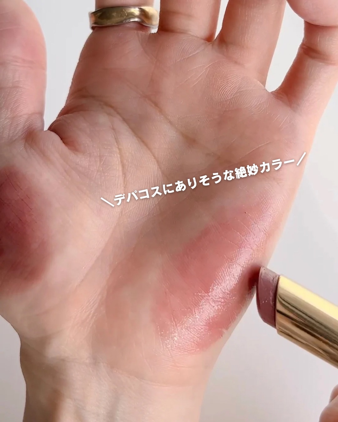唇の上を無抵抗でスルッスルッって塗れて、ツヤ感が長くキープされる!!! ティントではないから色持ちは控えめだけど、ツヤ系リップの割には保たれる! ブルベさん向きカラーだけど、外しに使えそうでボーイもずっと気になってます!!🥺 買って使ってみるとかなり満足度高いリップです!!まだ持ってない方はほんと買ってみて🥺💓