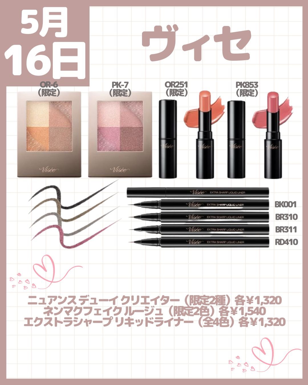 シルキースフレアイズ(限定1種)¥825 むにゅっとハイライター(限定1色)¥638 イルミネイティングフィニッシュパウダー~Abloom~(新1種)¥1,034 パウダーチークス(全4色)各¥660