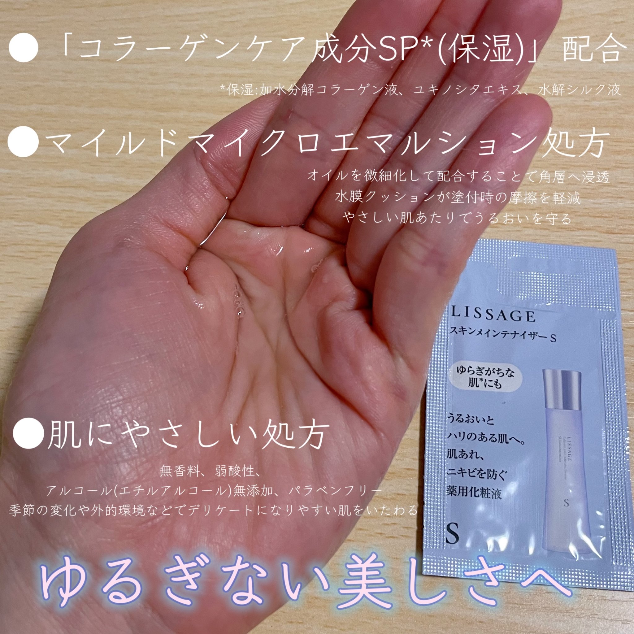 | サラッとした軽やかな テクスチャーで、 すーっと肌に馴染んでいくのが 心地よい♪ | 詳細を見る | ||
