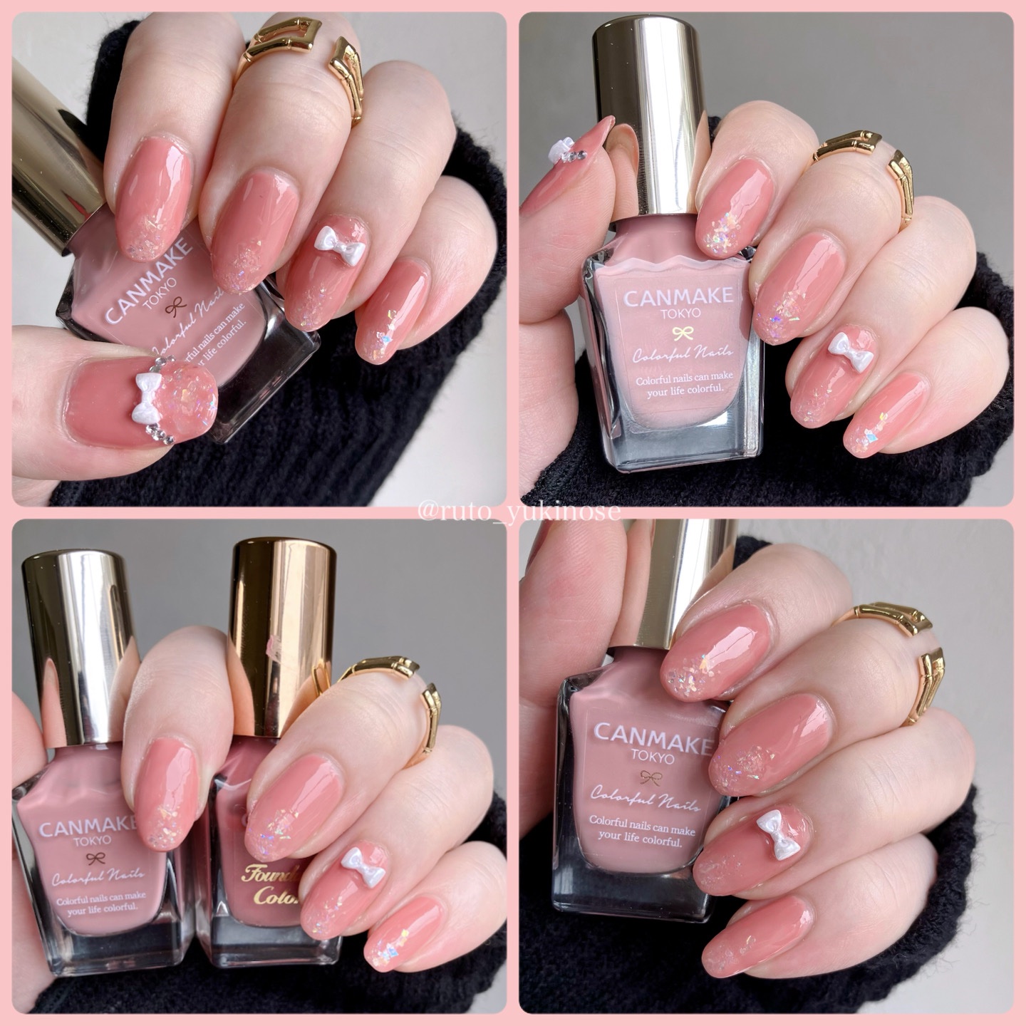 全色透け感のある仕上がりでムラになりにくく失敗知らず◎ マニキュアが上手く塗れない…という人やナチュラルなネイルがしたいという人に本当におすすめしたいシリーズ! 血色感をプラスするシアーなピンク 全体に塗るとポリッシュで見るより黄み感のあるコーラルピンク。可愛らしいポップな印象に。 透け感のある白みベースに繊細なピンクの偏光パールがたっぷり入ったカラー。 仕込みに使ってパールを透けさせるのが好き◎