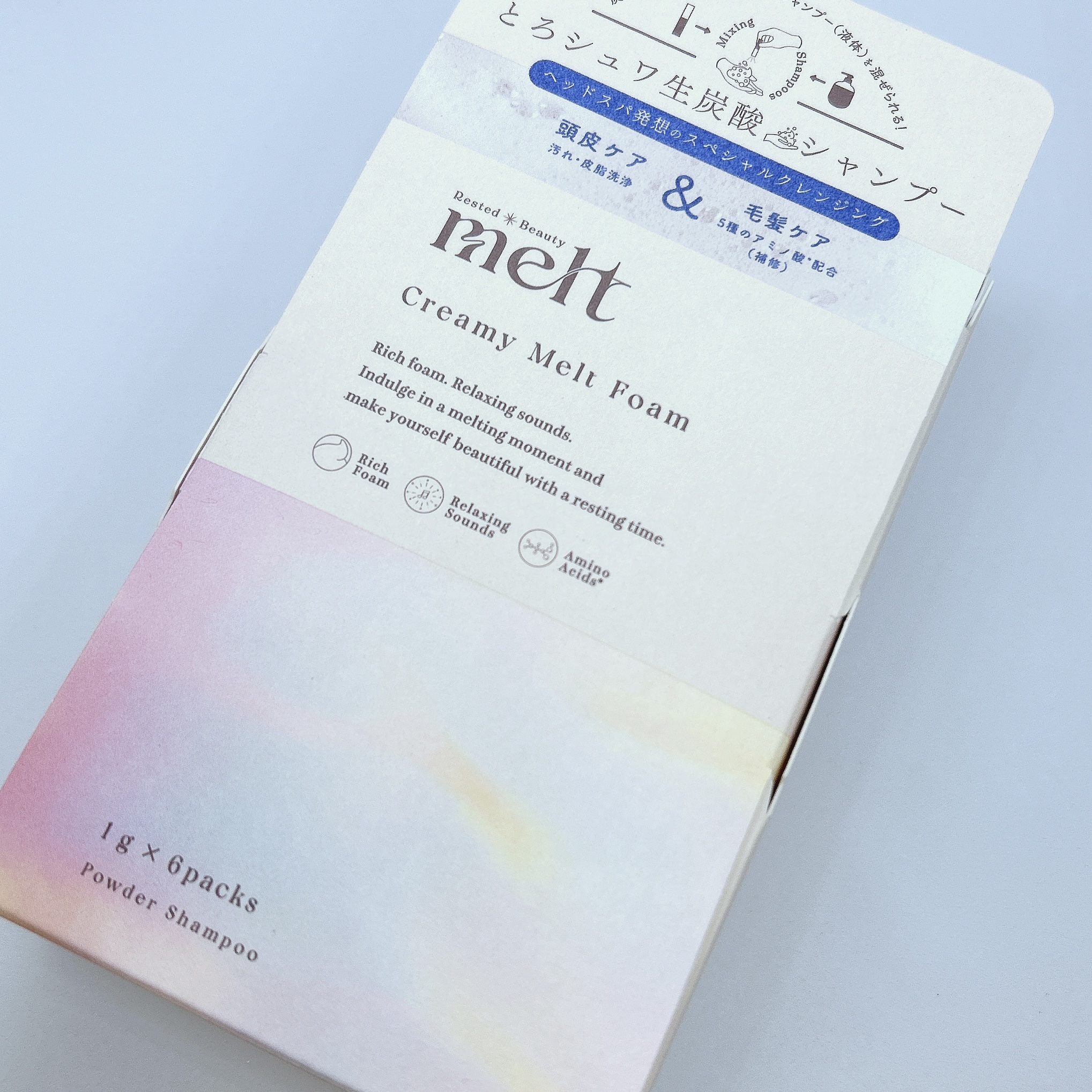 休息美容がコンセプトのヘアケア🛀🩵 炭酸パウダーを混ぜて使うと、とろシュワな生炭酸シャンプーが楽しめる😻 髪もしっとりめに仕上がったよ🙌🏻 ゼラニウム&ミュゲの心が落ち着くような香りが個人的にツボだった🥺💘