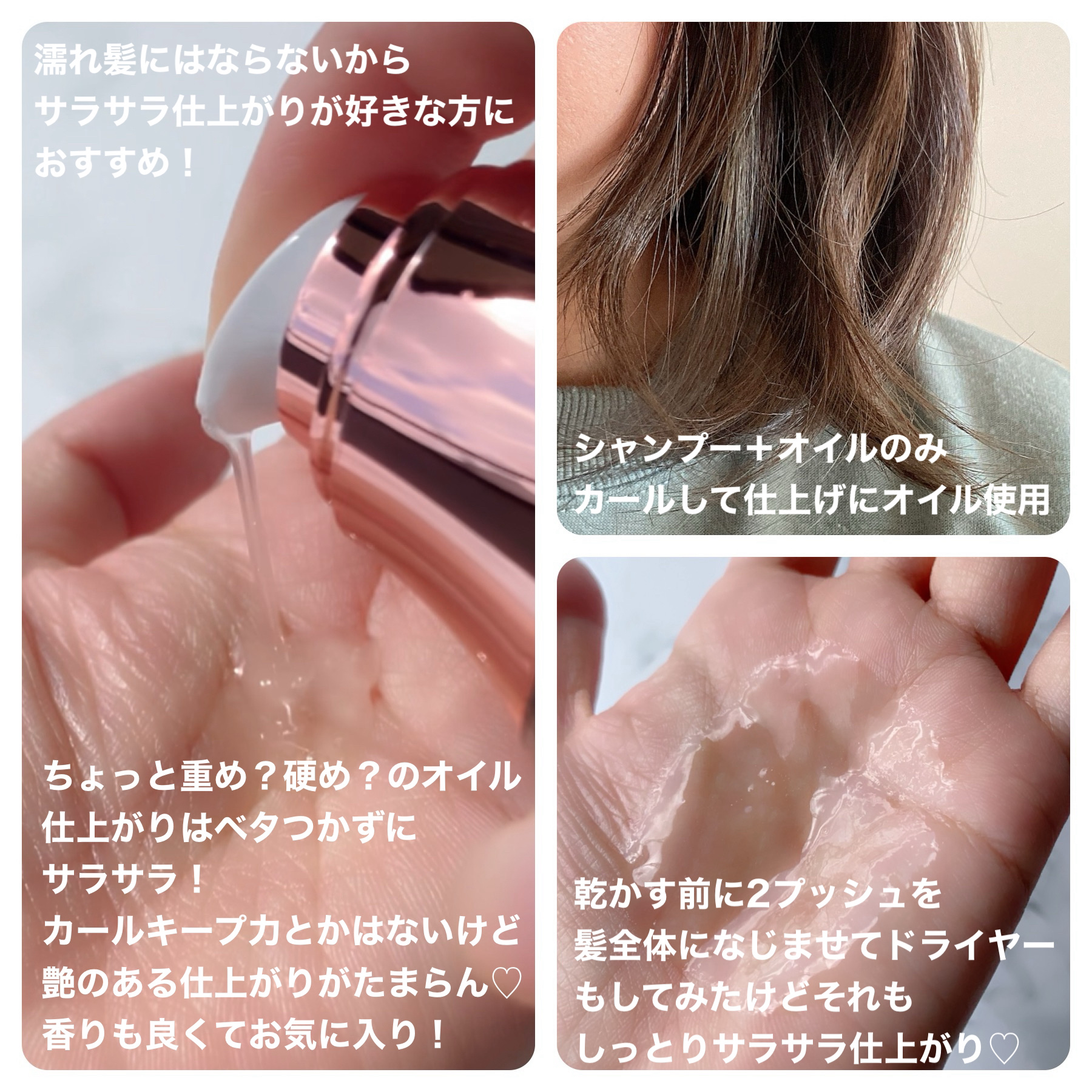 | 毛先だけじゃなく、髪全体に使えます🥰 自然にまとまって、ツヤっとした髪に✨ | 詳細を見る | ||