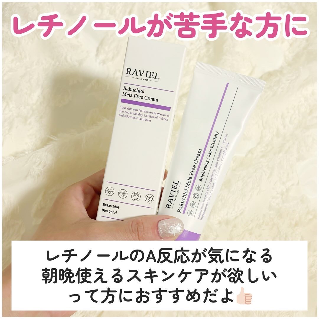 RAVIELバクチオールメラフリークリーム¥2,750メガ割時に出会って感動したクリーム😭👏✨私には効果バッチリでしたが、個人の意見なので参考程度に💦もう2本リピしてます!ご参考までに〜✋#RAVIEL#シミケア#クリーム#韓国コスメ#バクチ...