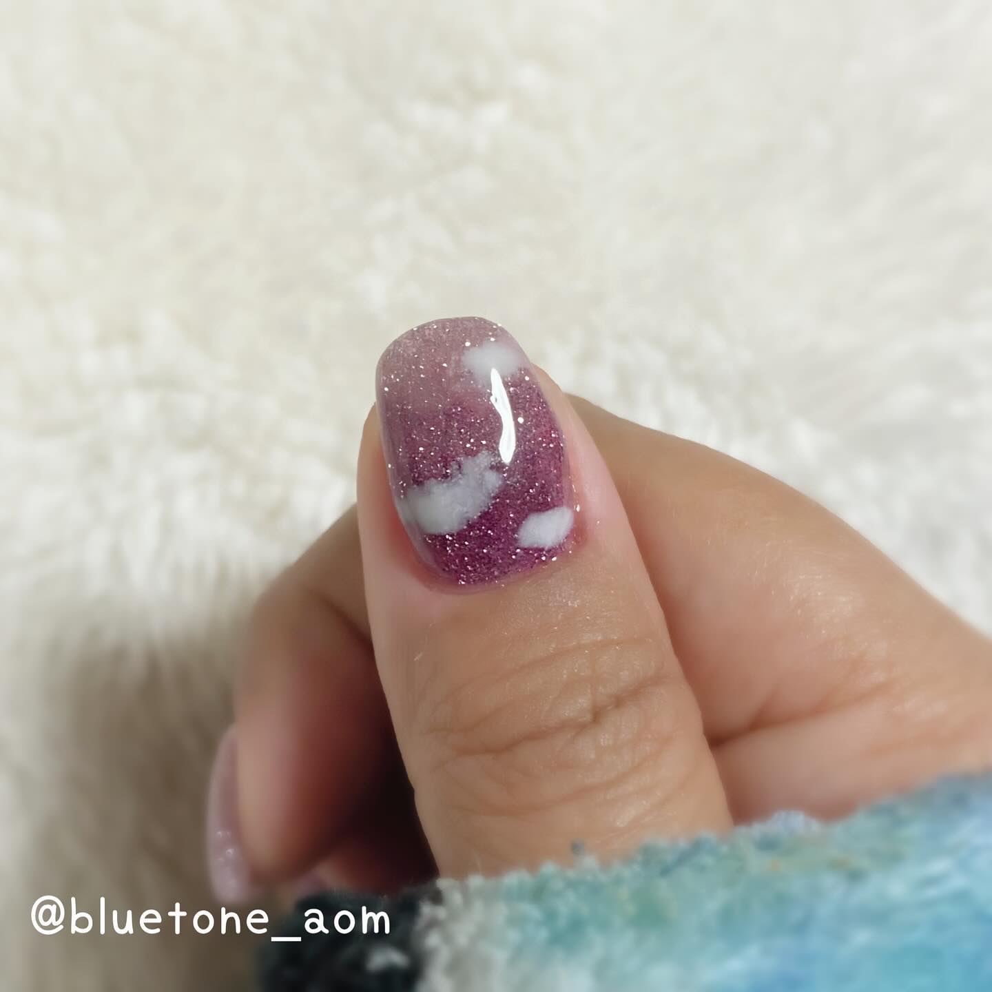 ラメがしっかりしてるし クリアカラーが入ってるから オーロラパウダー無しでも 充分キラキラしました! 反射強めのフィルムなので 実物はもっと うるうるとキラキラが強いです! ビー玉みたい🥺 ネイルシール長持ちさせたいけど ちょっと飽きてきたな〜って時とかに 全然違った印象になるのでオススメです! Seriaのベースジェル 本当にうるうるネイルしやすいので オススメしたい🙆♀️
