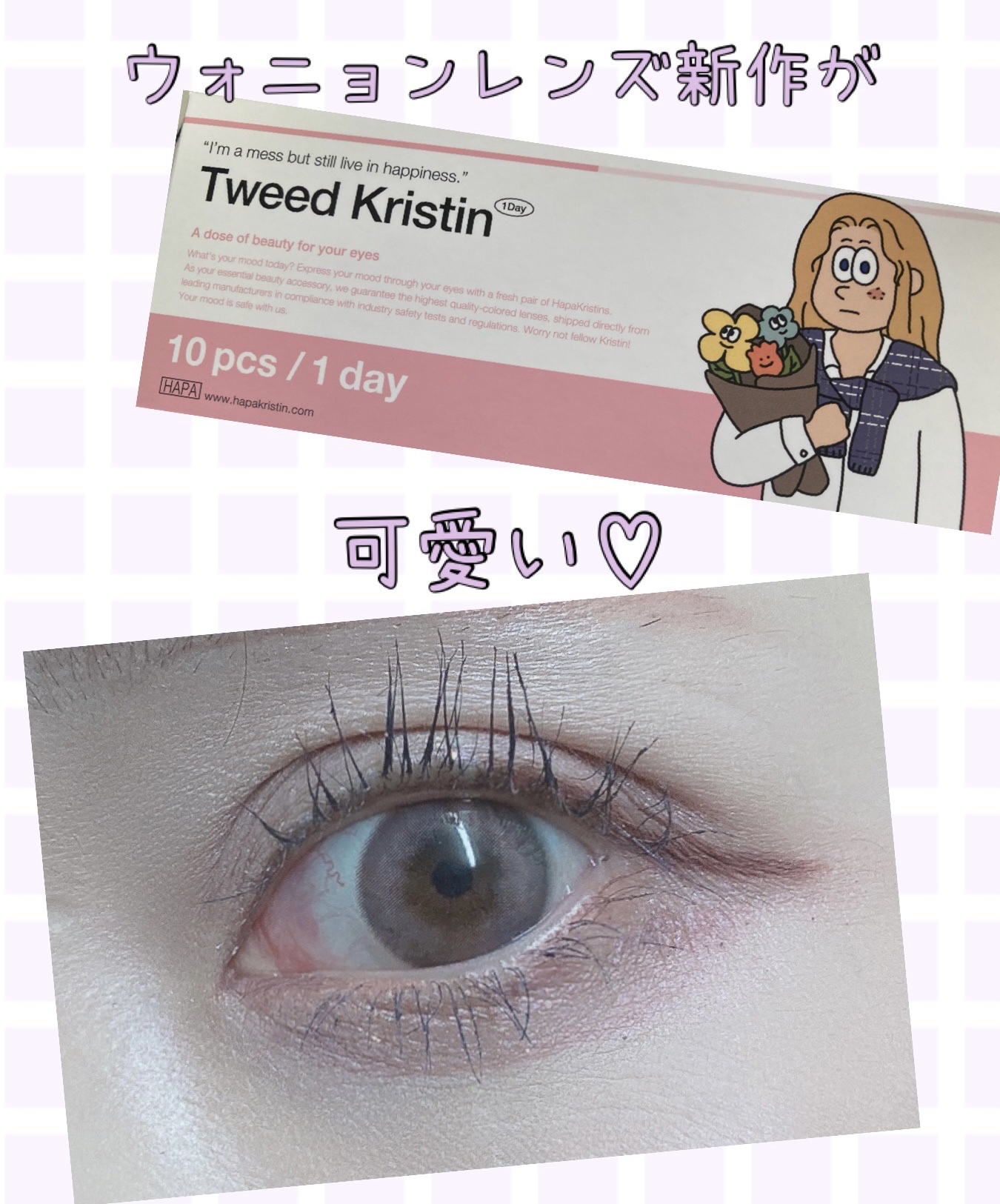 ハパクリスティンの新色モーブグレー ウォニョンちゃんの着画が可愛すぎて購入 あずき色のようなカラーでふんわりグレーなので使いやすく品が良くあざとい🩷 室内で見ると結構ナチュラルな瞳です🥺