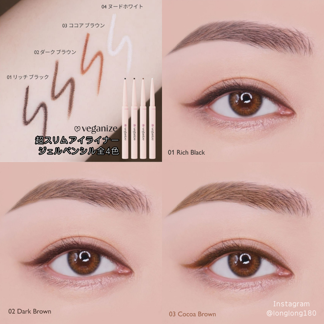 眉に練習するとどこを描き直せば良いのかわからなくなる場合があり、毛の邪魔のない手首が眉毛描く練習する最適のパーツ! 眉頭はヴィーガナイズ超スリムアイブロウペンシルの細い側で眉毛が立ってるように演出、 眉尻は太い側で間を埋めるように引くのがポイント☺