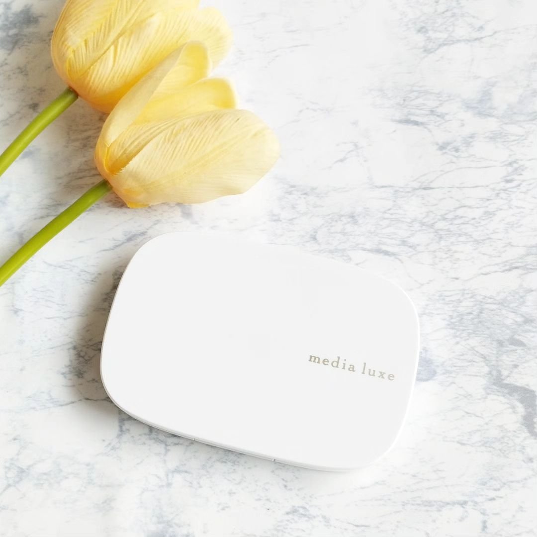メディアリュクス パウダーファンデーション02番は、ひと塗りでつるんとした肌に仕上げる♩ カバーカはありながらも厚塗り感のない、つるんとした自然な仕上がりになる️🩵 これが一番びっくりした🌷.*まさかここまで隠れるとは!!