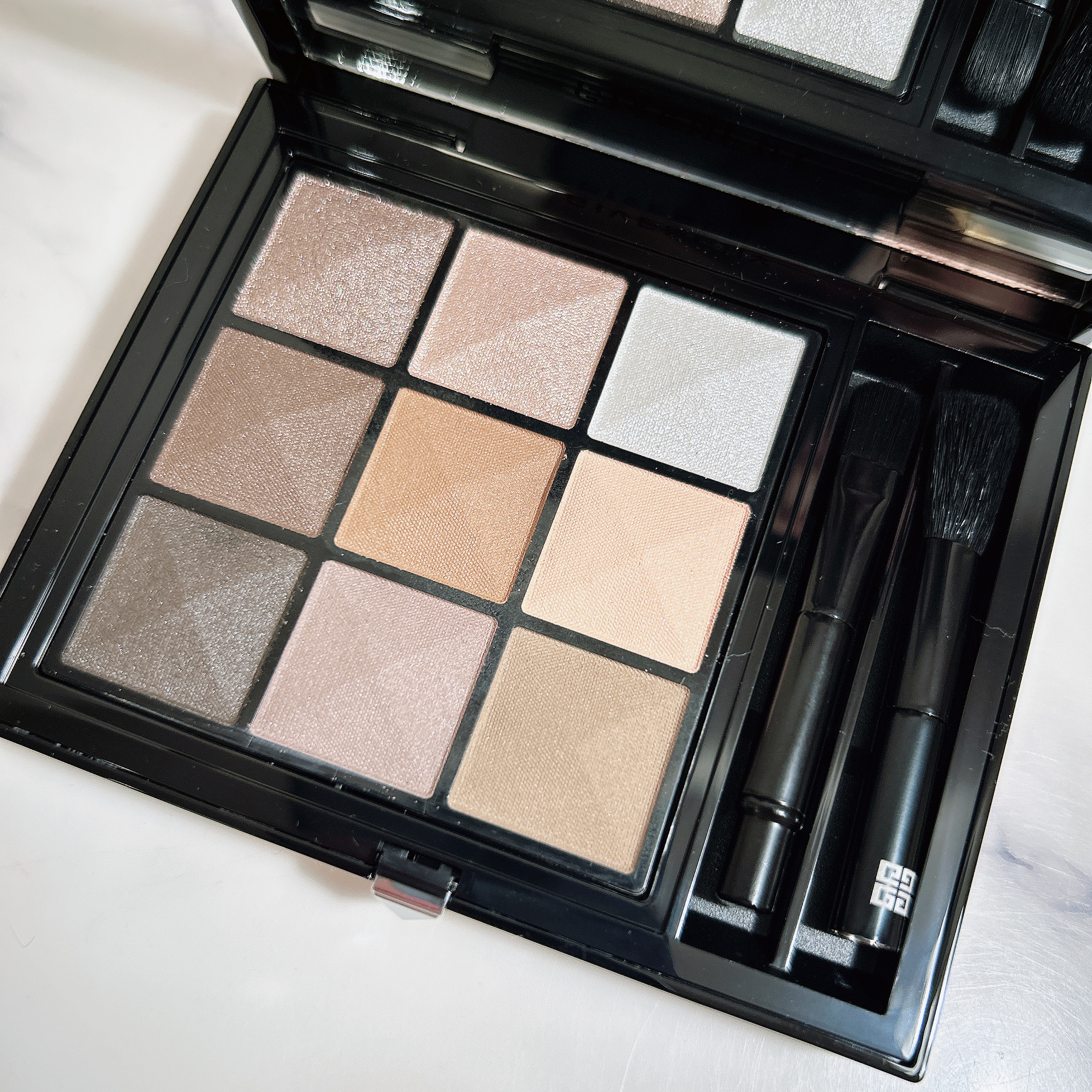 - ジバンシイが選び抜いた、9色ミックスの新アイシャドウ。 フランス語で数字の『9』を表す “neuf(ヌフ)” の言葉のとおり、マット、サテン、グリッター、メタリックの4種のテクスチュアからなる9色で構成されています。塗布すると肌に吸い付くようになじむテクスチュア。ロングラスティングで、メイク直後の美しい仕上がりが、長時間持続します。2種類のブラシをセットできるアプリケーター付き。