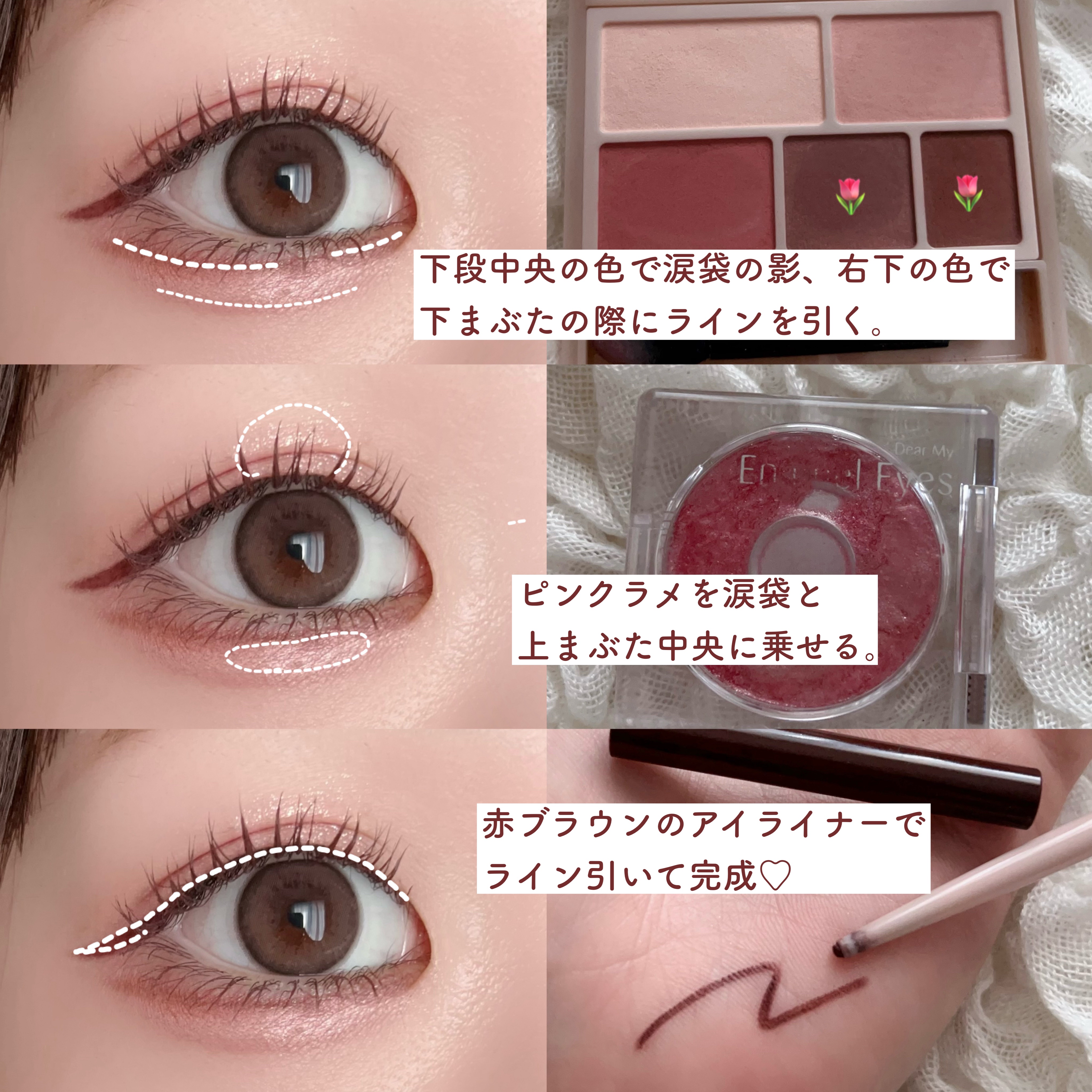 【手持ち涙袋ライナー比較✎𓈒𓂂𓏸】︎❤︎CEZANNE描くふたえアイライナー20影用グレージュ30影用ピンク¥660(税込)︎❤︎CANMAKE3wayスリムシェードライナー01ナチュラルブラウン02アッシュブラウン¥770(税込)...