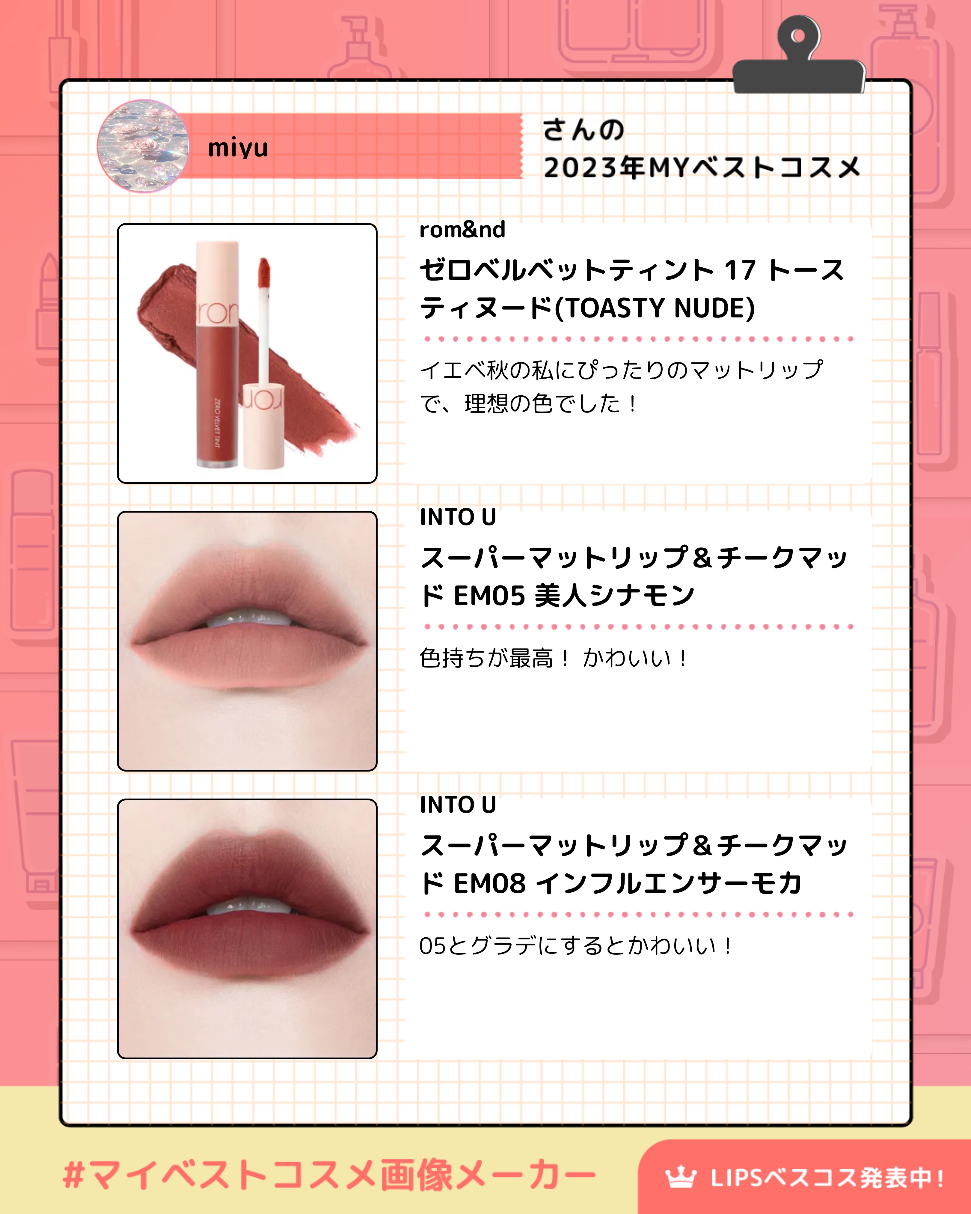 INTO U スーパーマットリップ&チークマッド | 1,430円 |