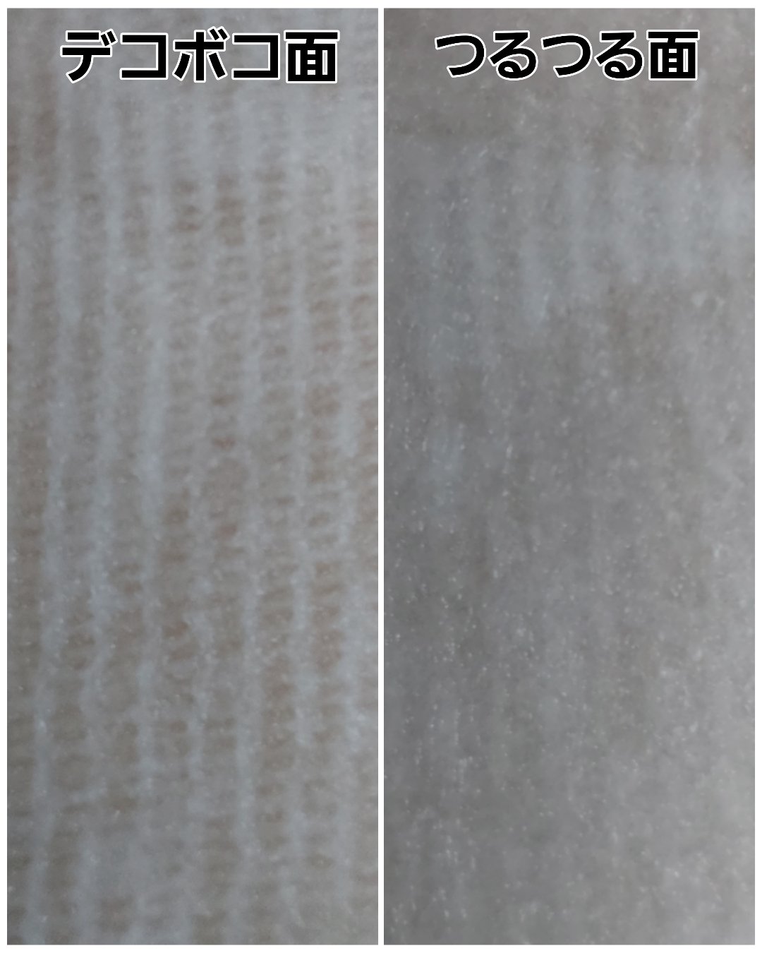 真ん中に点線があり半分にちぎることができます! 鼻やおでこ、あごなど半分にしてパックできるのがとても良かったです! ソフト面のほうは肌に優しく日々のスキンケアができて、デコボコ面は細かい凹凸で古い角質を取ることができるそうです! 刺激を感じたりなどがなかったです!