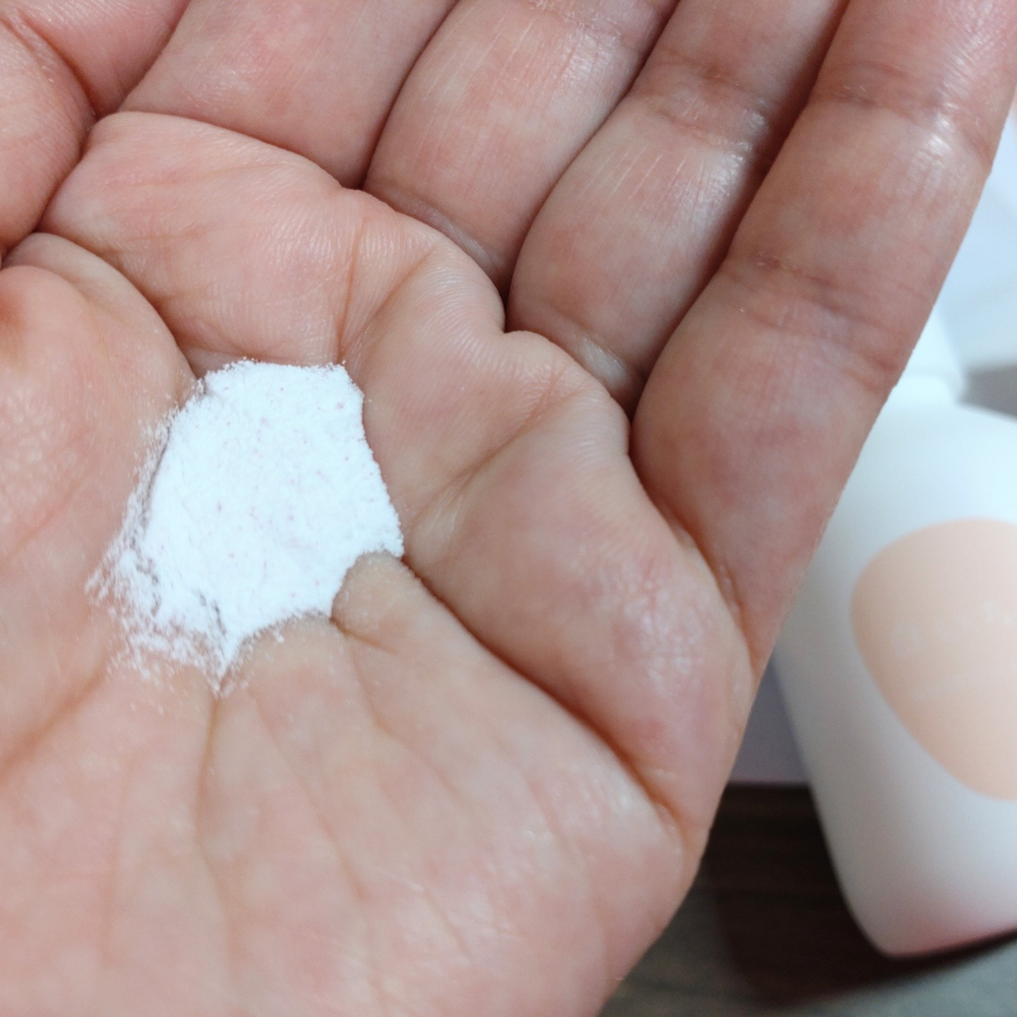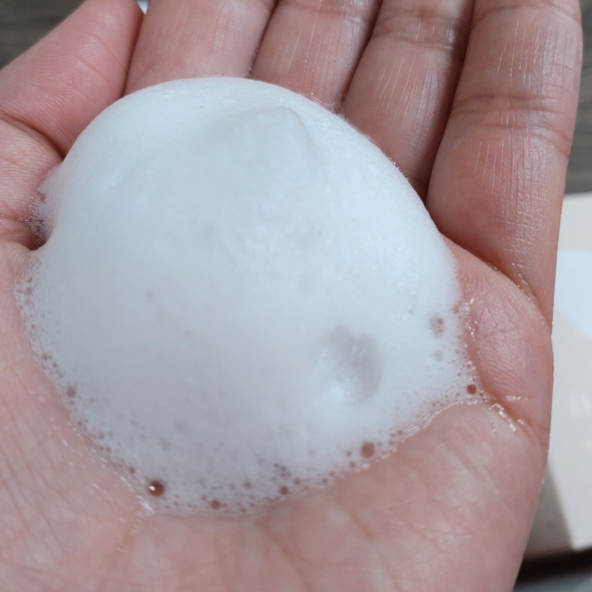 もこもこふわふわな泡立ちで、顔全体を包み込むように優しく洗えます。 洗い上がりにつっぱる感じもなく、もっちりします。 洗い流した後、毛穴がスッキリする感じが気に入っています。 自然なフローラルの香りも好き。 ボトルも可愛いから、使うたびに気分が上がる洗顔パウダーです!