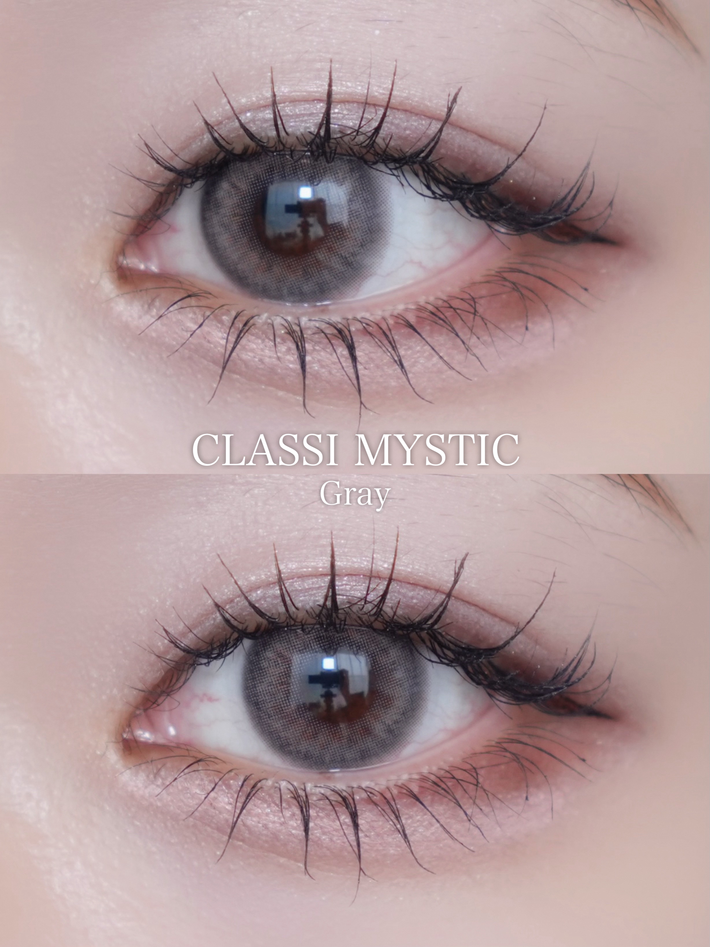 一番フチが太めだけど、ふわっとしたデザインなので きつい印象にならない! グレーみはしっかり感じることができる🩶 フチが細くてくっきりしてる! ガラス玉みたいにくりっとした印象に✨ 瞳の印象をはっきりさせたい人におすすめ 着色直径は一番小さめだけどくりっと見える! 比較すると、ベージュも混ざったような色に見えて グレージュカラーに近いイメージ♡