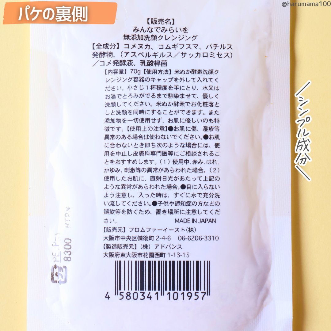 商品詳細情報みんなでみらいを 米ぬか酵素洗顔クレンジング