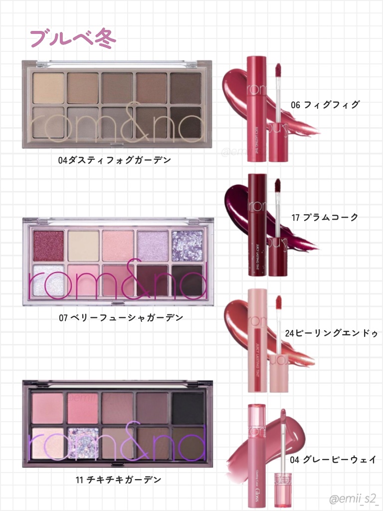 【2023年最新版】大人気ロムアンドリップをパーソナルカラー分類💄保存推奨です🕊️\現時点で全35色/ミニサイズや新色が出た時は、この投稿に追加します!🗒️参考になれば嬉しいです♡rom&ndジューシーラスティングティント01 ジューシーオー...