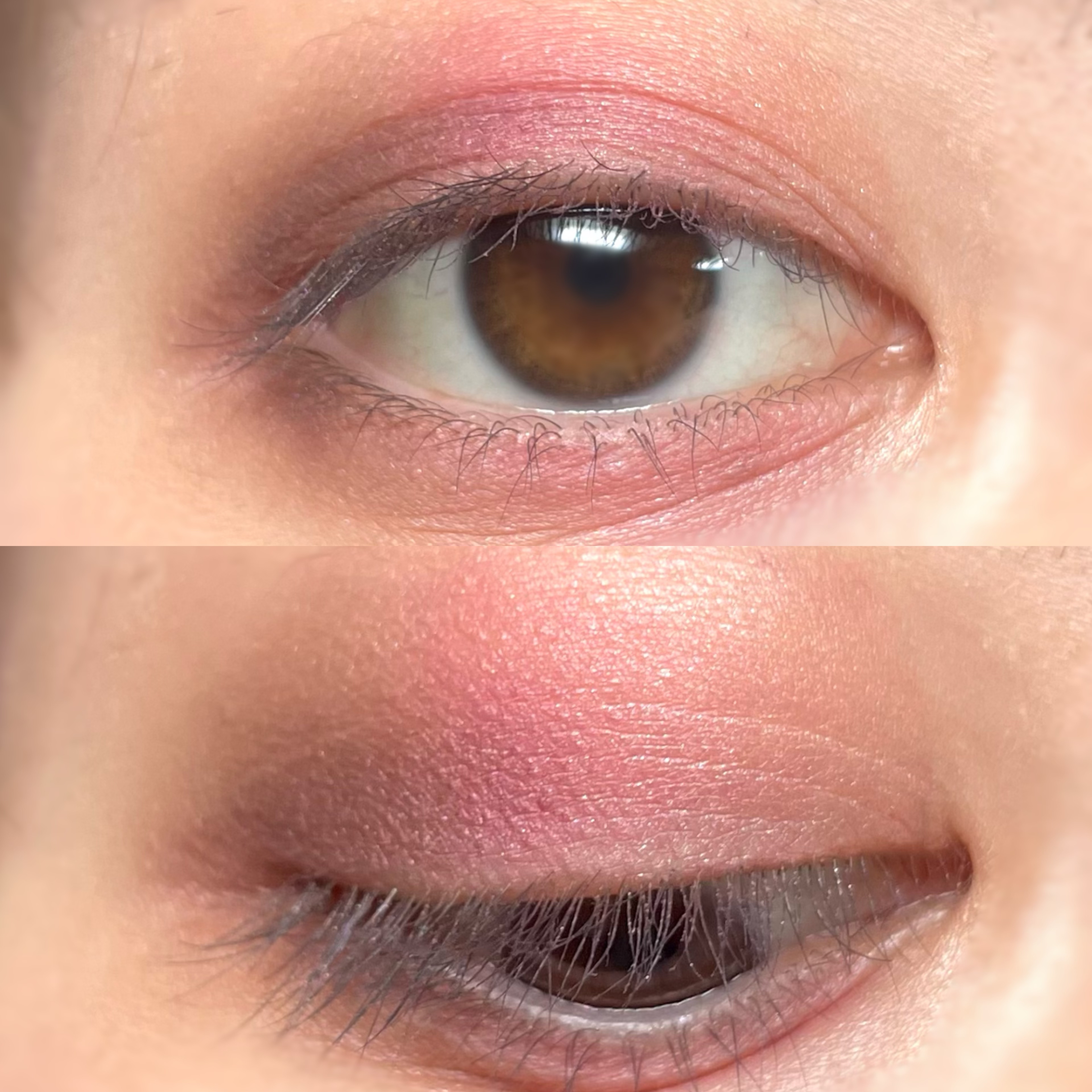 クラッシィブラウンは青み強めで彩度低めな感じなんですが、パフィブラウンは青みもあるけどピンク味もあって、暖かみのある落ち着いたブラウンです。 ピオニーブラウンの方が明るくて可愛い系ピンクブラウンて気がします。 発色は強すぎずブラウンベースなので普段使いしやすくてナチュラルメイク向け。