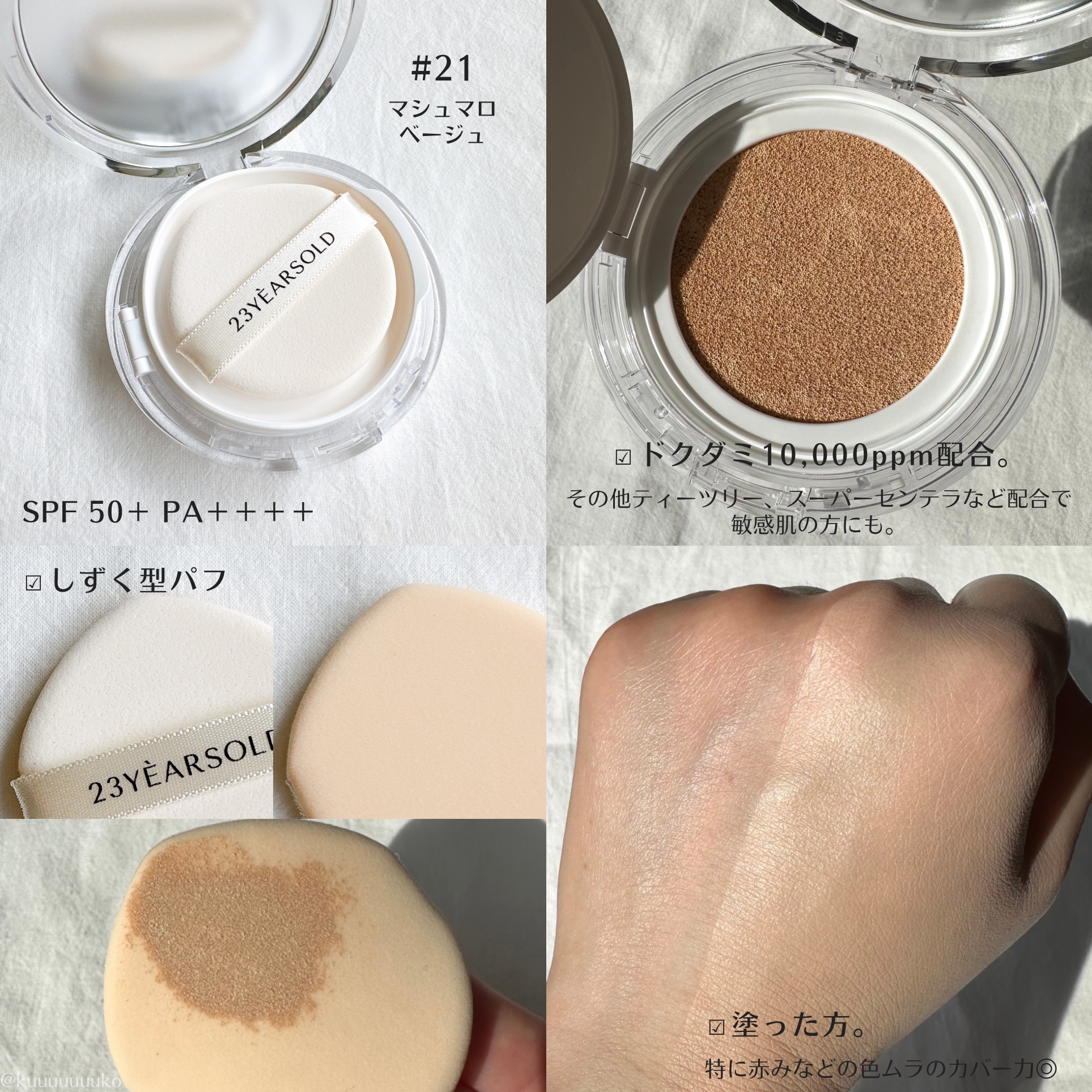 #PR#23YEARSOLD@23yearsold_jpハートリーフシンカバークッションドクダミエキス約10000PPM配合軽いつけ心地でセミマット仕上がりが綺麗なクッション🤍柔らかなパフで密着力◎パケも可愛いしミニコンシーラー付きなのも嬉し...