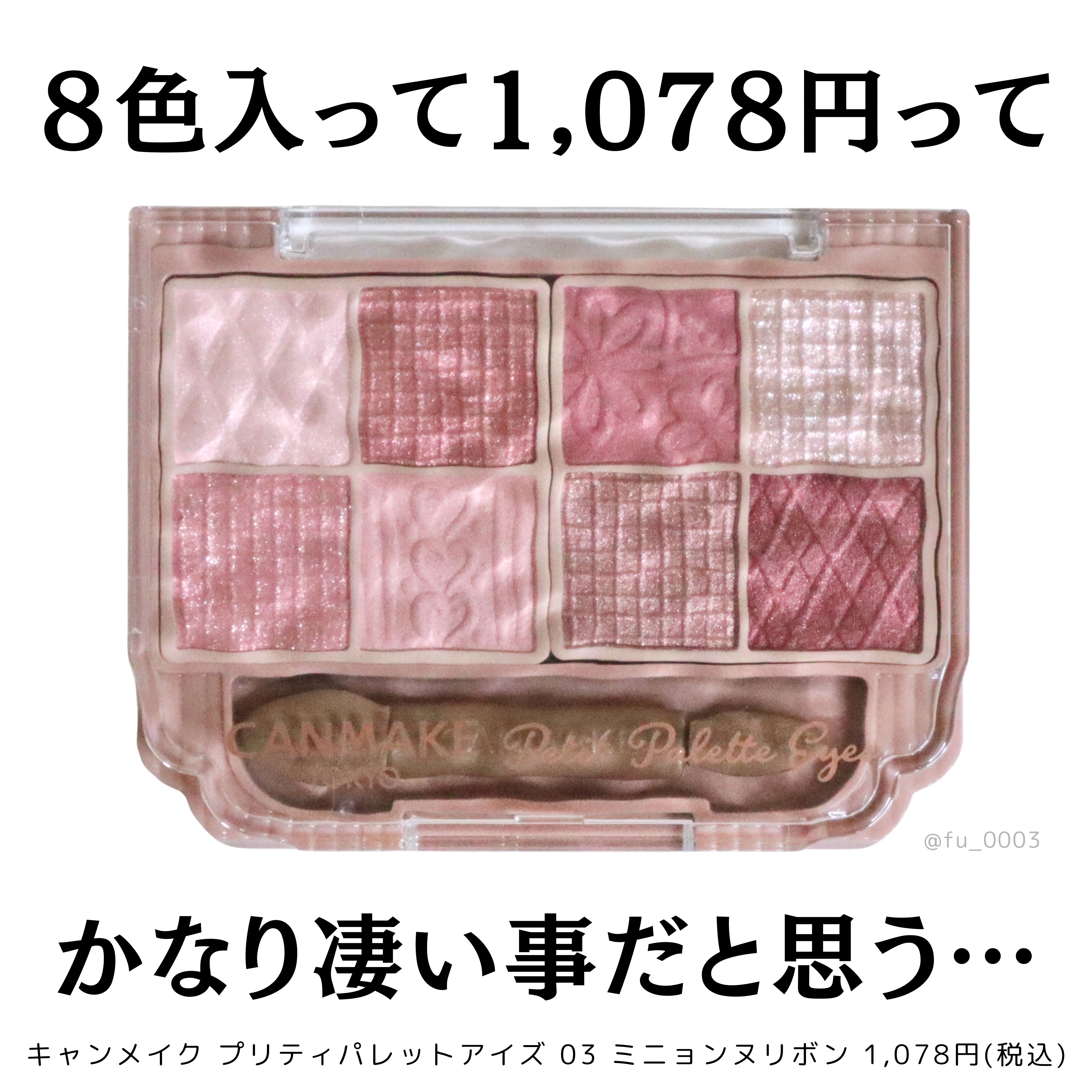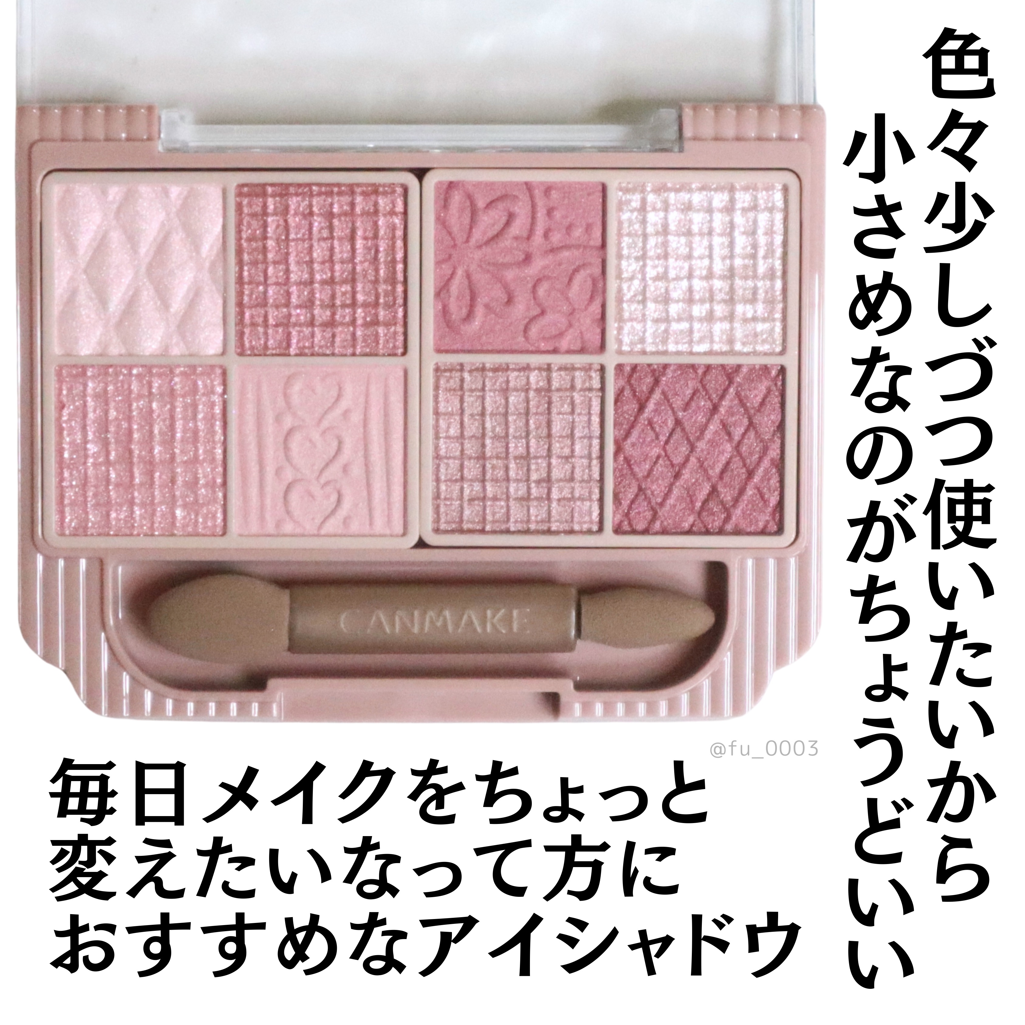 - 持ち歩ける多色パレットがキャンメイクから登場! 捨て色なしの8色入り&チップ付! 「持ち歩けること」や「外出先でもメイク直しができること」を重視した多色パレット。 持ち運びやすいサイズ感なのに、贅沢に8色入りです。 さらに便利なダブルエンドチップまで! マット×パール×ラメなど、組み合わせ方はあなたの自由! 自分好みのアイメイクを楽しめます。