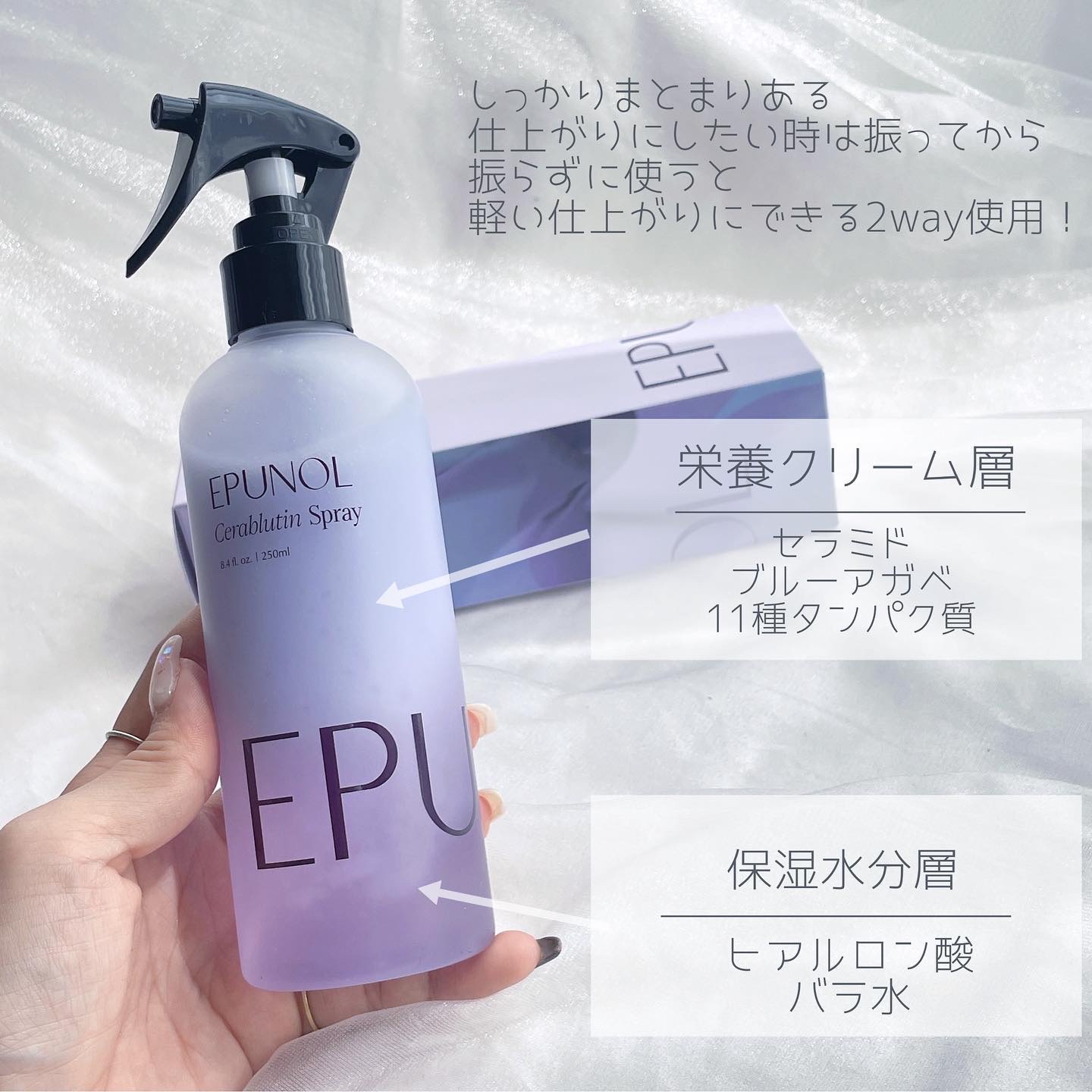 韓国発美容室の髪質改善トリートメントスプレー。水分層と栄養クリームの2重構造になっていて、べたつかない柔らかな髪に導いてくれます。 EPUNOL独自成分セラブルーチン含有。オイルベースなのにベタつかない濡れた髪に3プッシュ使うとまとまりのある髪にしてくれます❤︎ ライン使いするのがおすすめ❤︎柔らかいサラツヤ髪に導いてくれます。ふんわり香るフローラルの香り💐