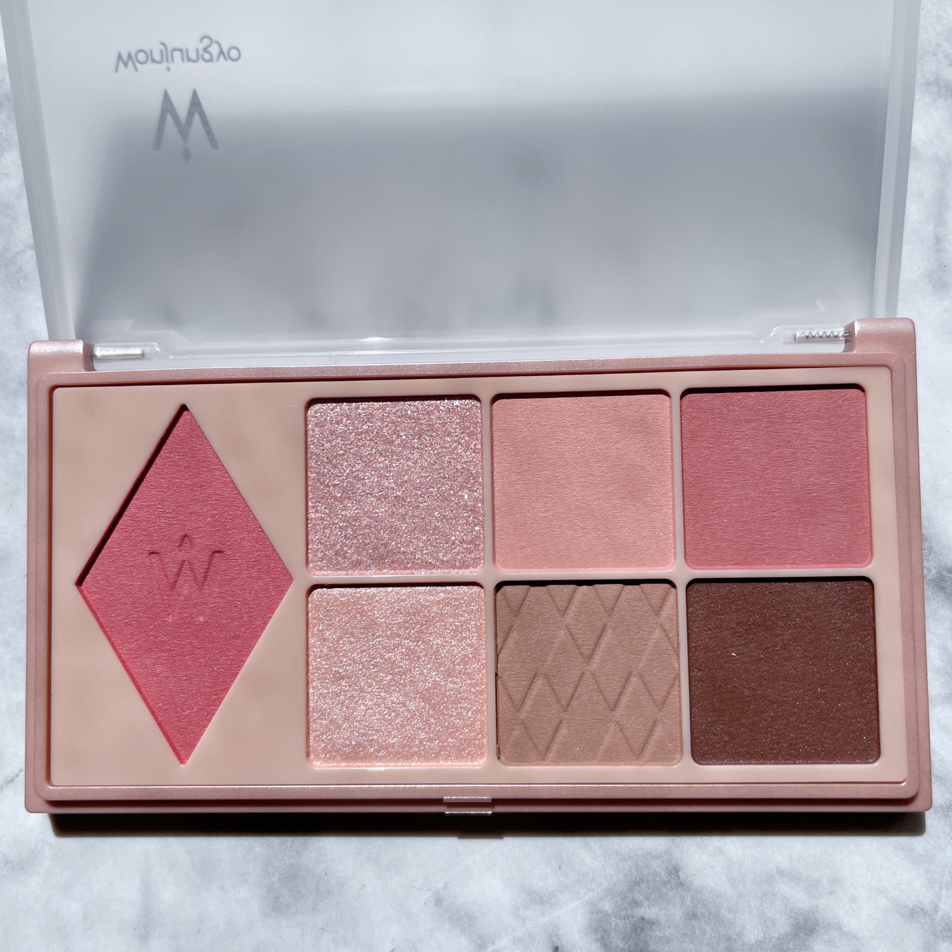 Wonjungyoのデイリームードアップパレットが有能すぎるので、04 クライローズも追加でゲット!!!👑♡ 発色も粉質もふわっとしてるから、失敗しにくくて初心者さんでも挑戦しやすい! チークとアイシャドウが一緒になってるのも素晴らしいし、2種類のラメがほんっとに可愛い🥺