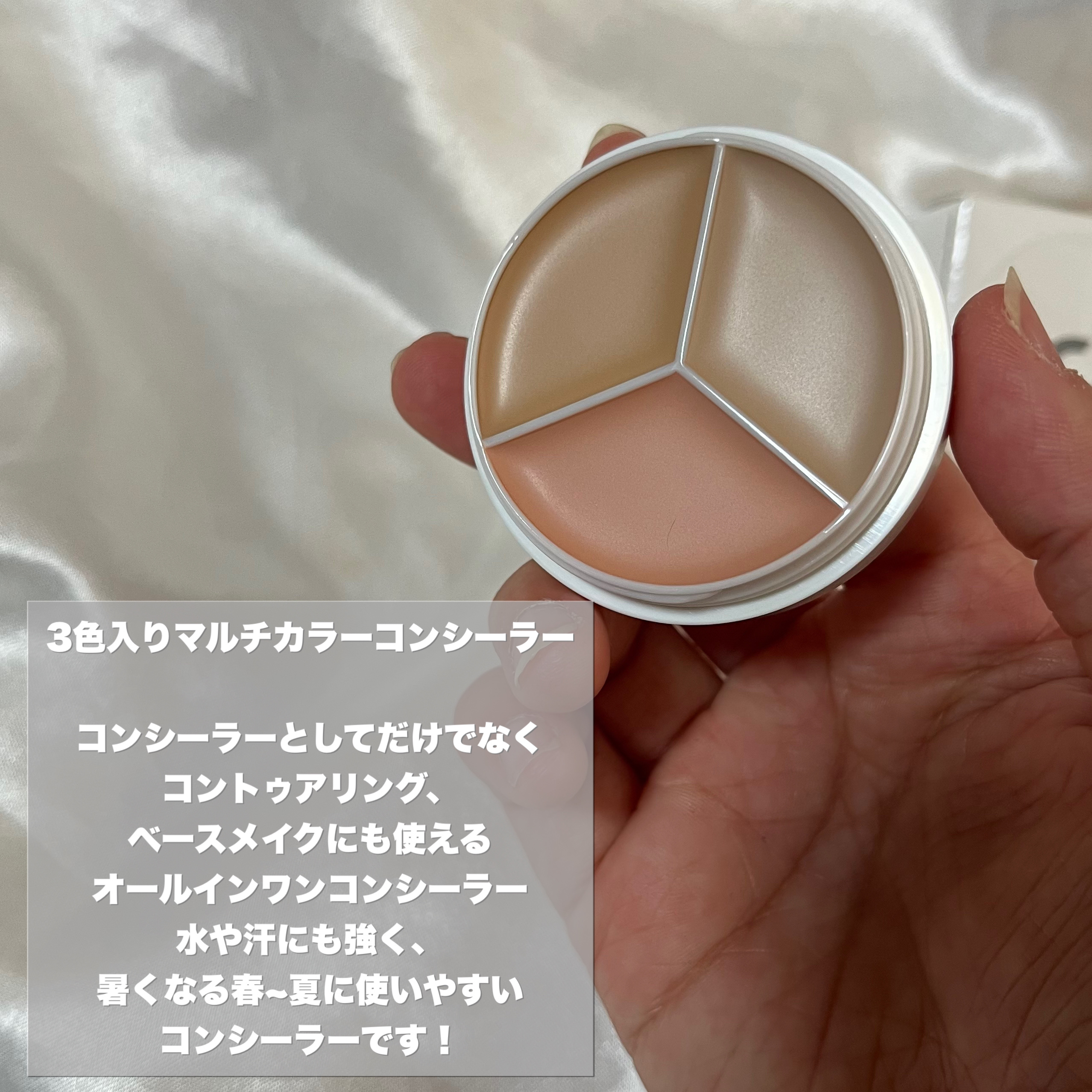 - クマからニキビ跡、シミまでこれ1つでカバー。 3色タイプだからこそ、気になるところや肌色を選ばずにご使用いただけます。 リキッドタイプを圧縮した高濃度バームのため高カバー高密着*¹を実現。 コンシーラーだけでなくコントアとしても使用可能です。 *1メーカー比