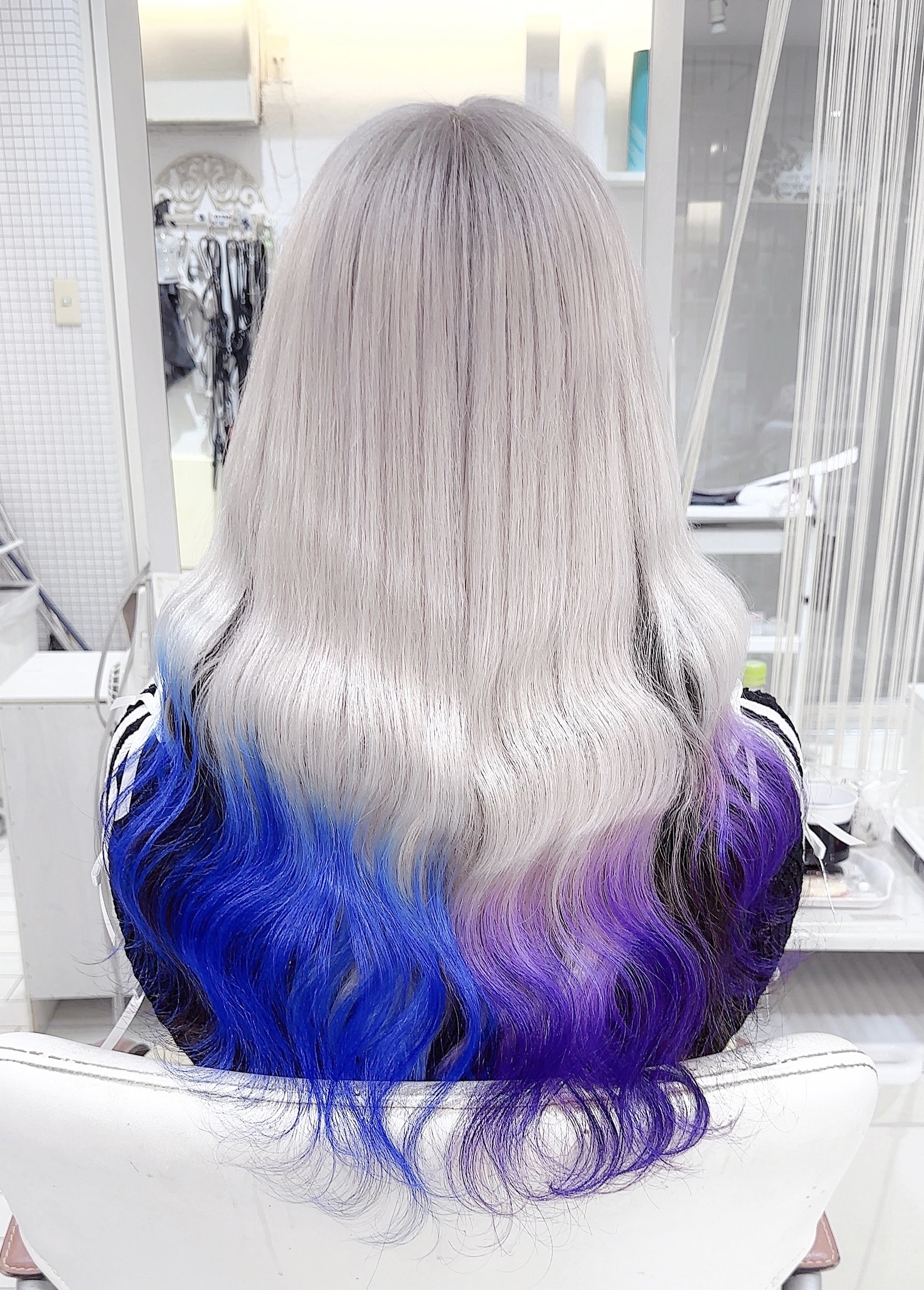 紫×白(グレー寄り)です!!ハーフアップとかにして紫が全面に出るとちょっとキツめの印象になってしまうので、お下げやストレートで下ろしてゴールドのヘアピンつけたりしてます✨ ダイアンのパーフェクトビューティ モイストダイアン エクストラダメージリペア シャンプー/トリートメントを使っています! 過去にブリーチ6回してる私が実際にしているヘアケアを紹介しているので、よければ固定投稿を見て頂けると嬉しいです!