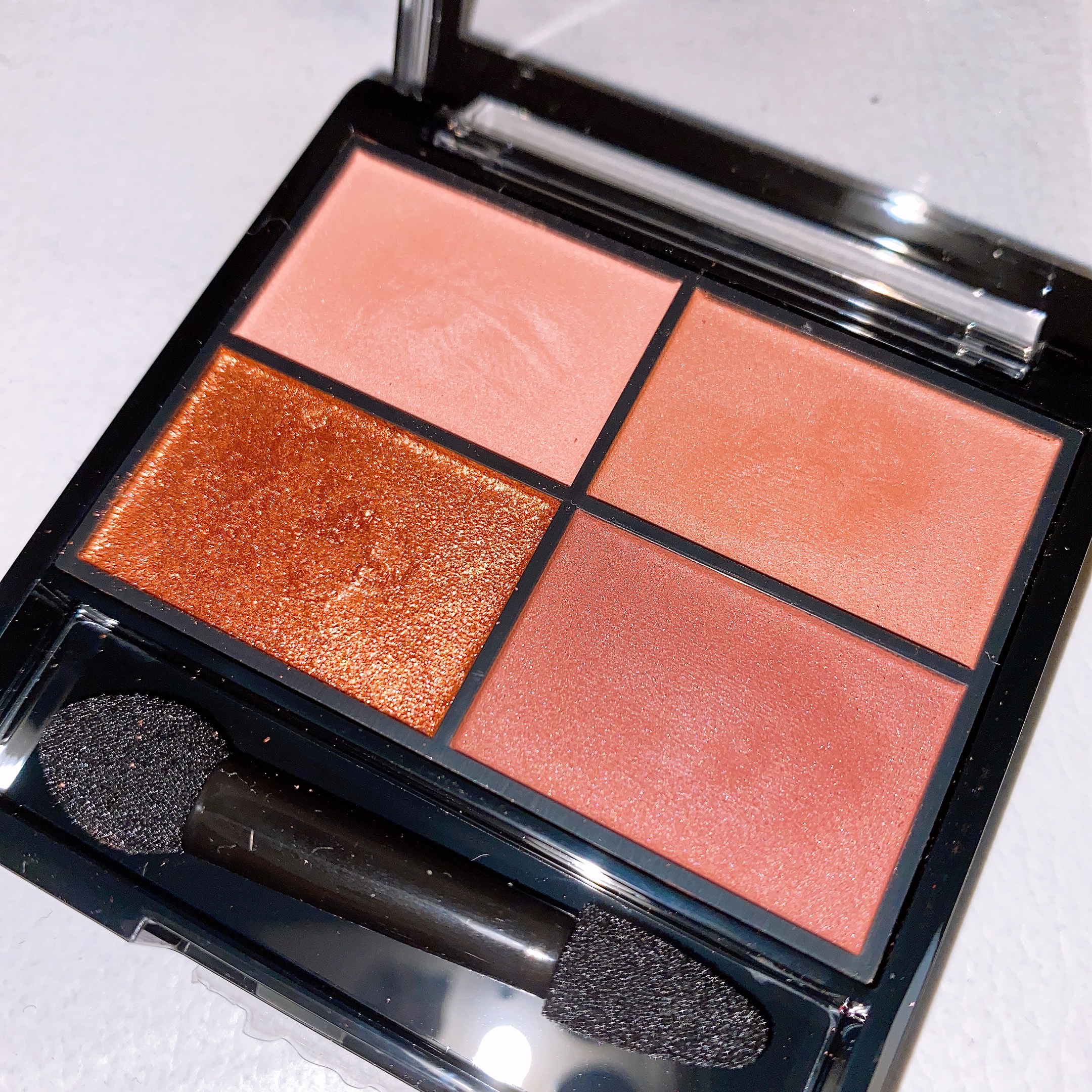 こんにちは✨本日は色がイエべ秋の私にささったアイシャドウをご紹介します✨REVLONレブロンダズルアイシャドウクアッド002サンセットブリック定価¥1,540こちらはイエべ秋大歓喜のテラコッタアイパレット🍁🍂グリッター、パール、サテン、マット...