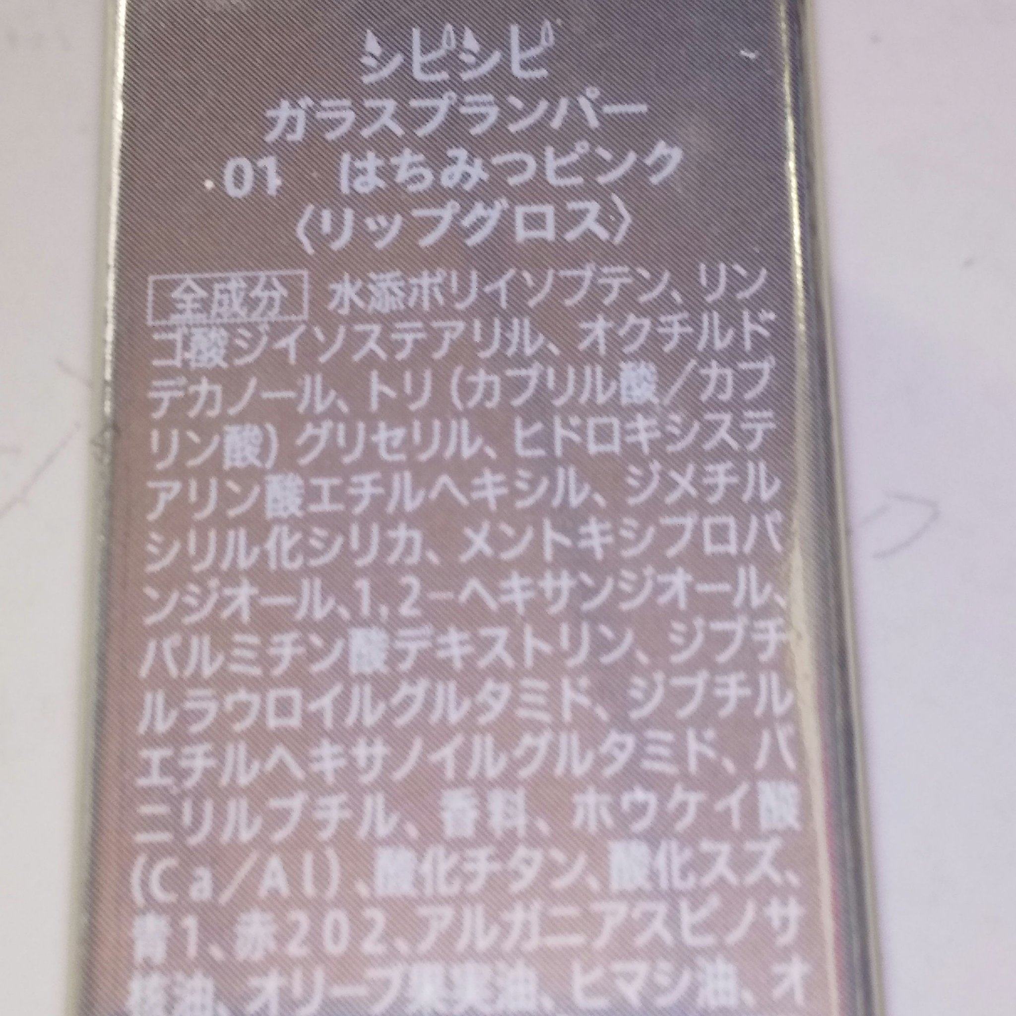 - <01 はちみつピンク> 水添ポリイソブテン、リンゴ酸ジイソステアリル、オクチルドデカノール、トリ(カプリル酸/カプリン酸)グリセリル、リンゴ酸ジイソステアリル、ヒドロキシステアリン酸エチルヘキシル、ジメチルシリル化シリカ、メントキシプロパンジオール、1,2-ヘキサンジオール、パルミチン酸デキストリン、ジブチルラウロイルグルタミド、ジブチルエチルヘキサノイルグルタミド、バニリルブチル、香料、ホウケイ酸(Ca/Al)、酸化チタン、酸化スズ、リンゴ酸ジイソステアリル、青1、赤202、アルガニアスピノサ核油、オリーブ果実油、ヒマシ油、オリーブ油脂肪酸ソルビタン、ヒアルロン酸Na、カプロン酸 <02 みずあめブルー> 水添ポリイソブテン、リンゴ酸ジイソステアリル、オクチルドデカノール、トリ(カプリル酸/カプリン酸)グリセリル、リンゴ酸ジイソステアリル、ヒドロキシステアリン酸エチルヘキシル、ジメチルシリル化シリカ、メントキシプロパンジオール、1,2-ヘキサンジオール、パルミチン酸デキストリン、ジブチルラウロイルグルタミド、ジブチルエチルヘキサノイルグルタミド、香料、バニリルブチル、ホウケイ酸(Ca/Al)、酸化チタン、酸化スズ、リンゴ酸ジイソステアリル、青1、アルガニアスピノサ核油、オリーブ果実油、ヒマシ油、オリーブ油脂肪酸ソルビタン、ヒアルロン酸Na、カプロン酸