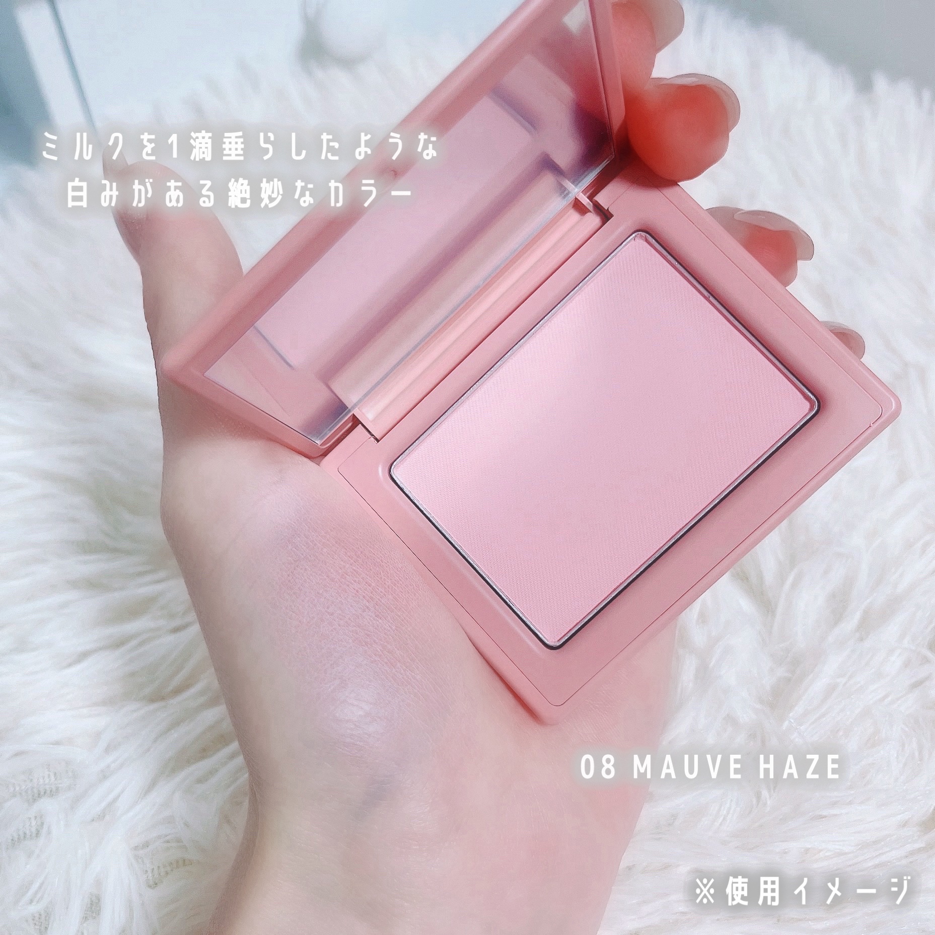 - 柔らかいベルベットパウダーがムラなく密着し、 くすみにくく明るい印象が続くブラーリングチークです。