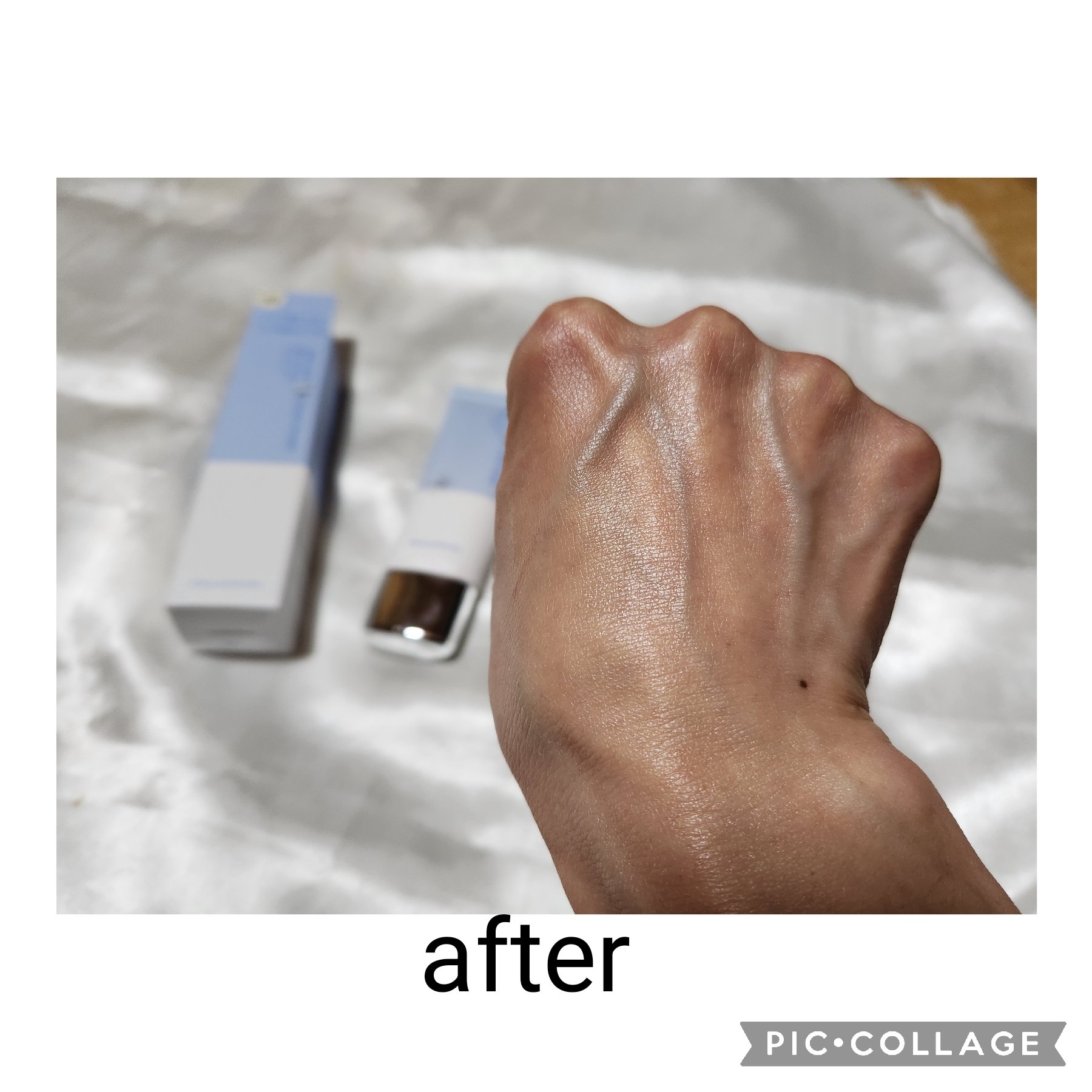 パフで出した時は3色分かれて出てくるけど、肌に乗せると混ざり合って透明感が出ます。 付属のブラシで使ってみたら均一に、透明感のあるサラサラとしたお肌になりました。 ブラシの時は、本体は少し斜めにして粉を出してました。肌に乗せるとナチュラルにツヤッとした感じがいいなと思います。