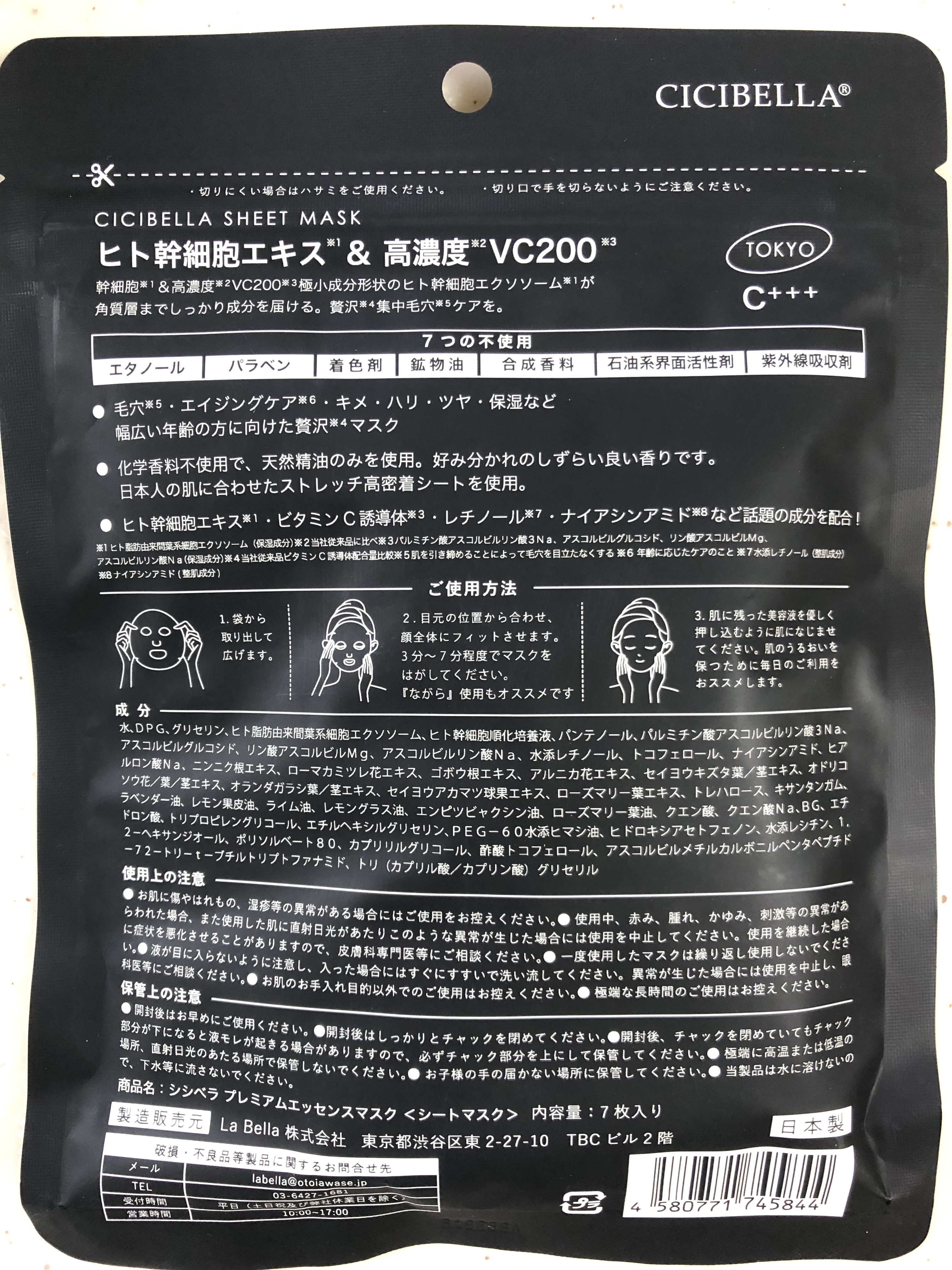 商品詳細情報CICIBELLA シートマスク ヒト幹細胞×VC200