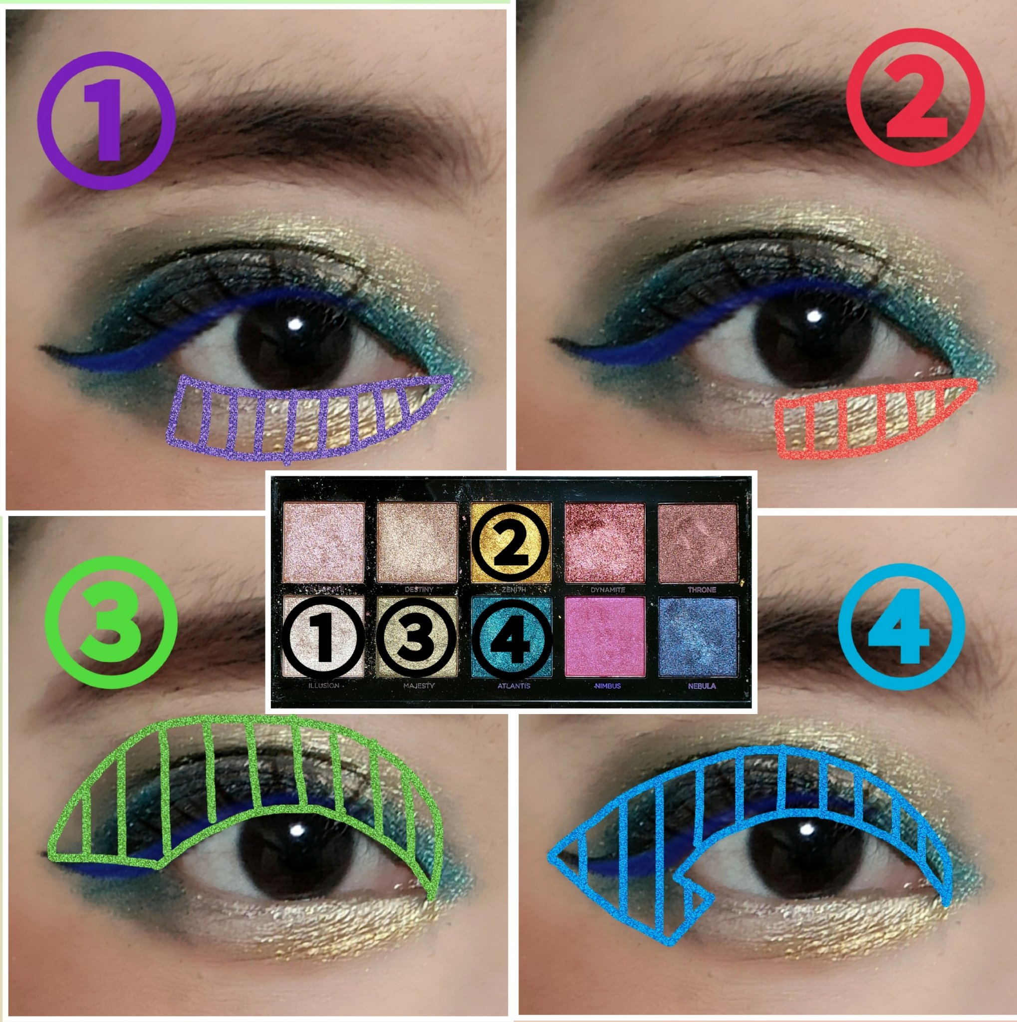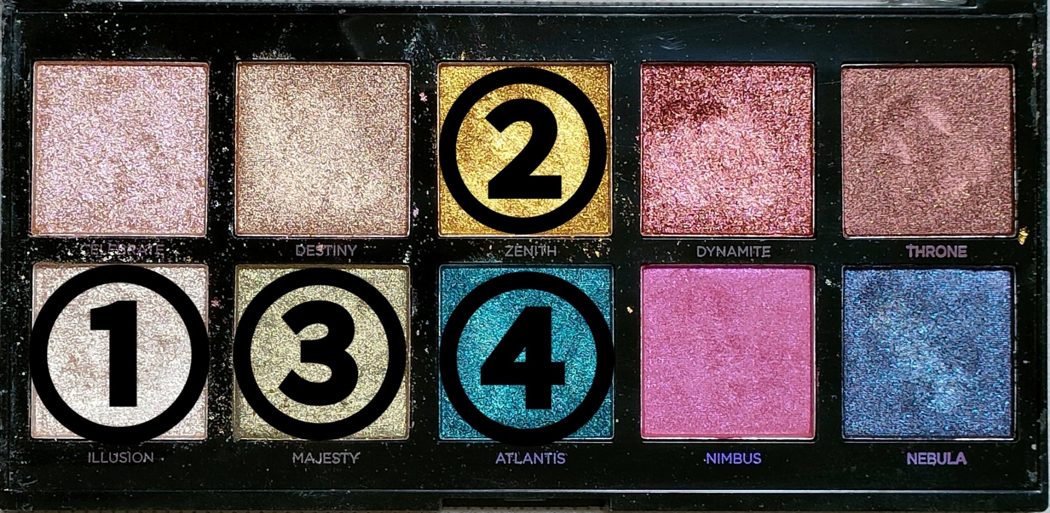 アイシャドウパレットは、URGLAM UR GLAMBLOOMING EYE COLOR PALETTE 02を、使用しました。 マスカラは、MAYBELLINE NEW YORK コロッサルボリュームエクスプレスを、まつ毛全体にまんべんなく塗ります。 リップは、wet 'n' wild MegaLast Lip Colorを、唇全体にまんべんなく塗ります。